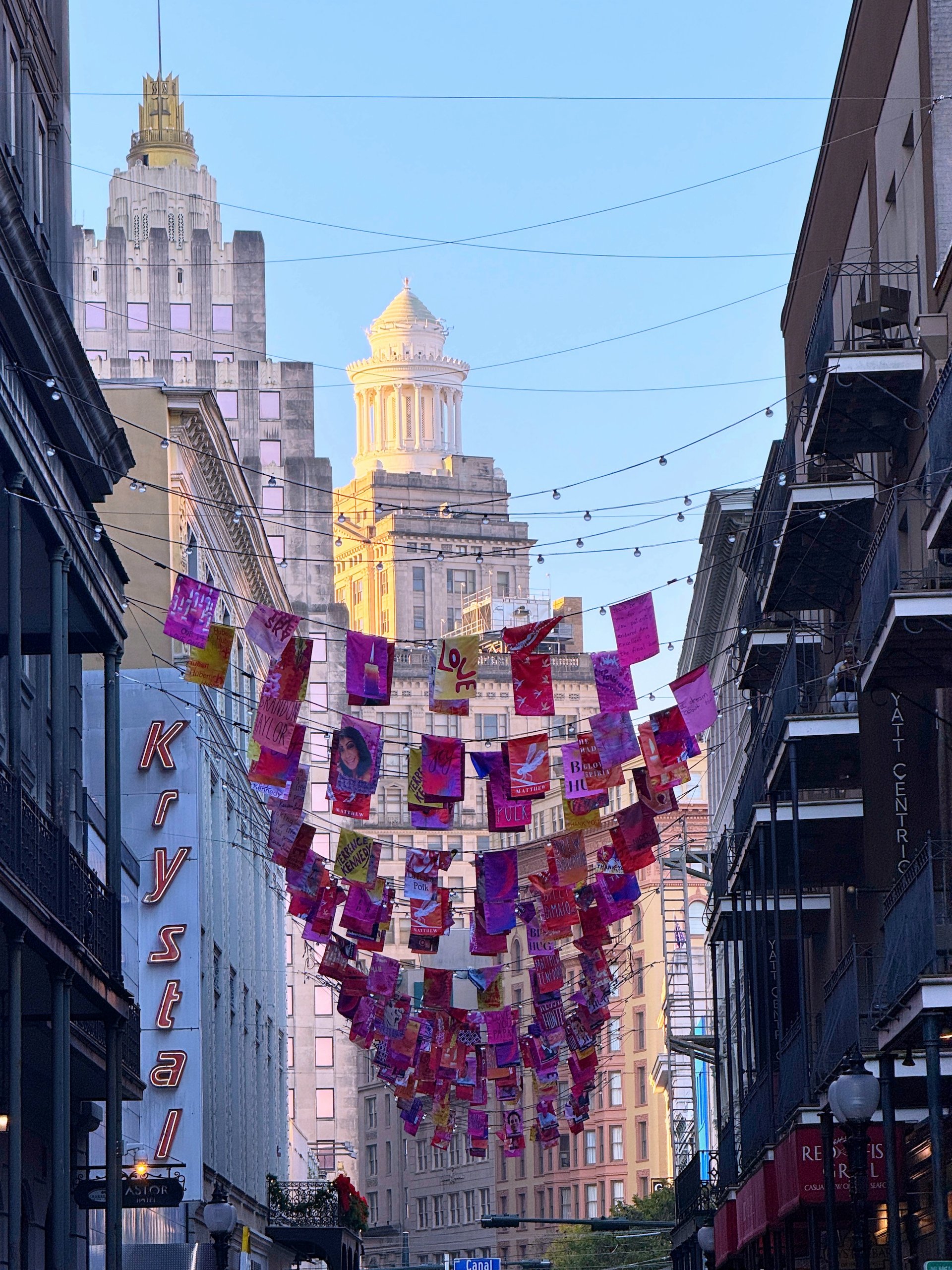 Second Line in the Sky installed above Bourbon Street in New Orleans's French Quarter Photo by David Nola