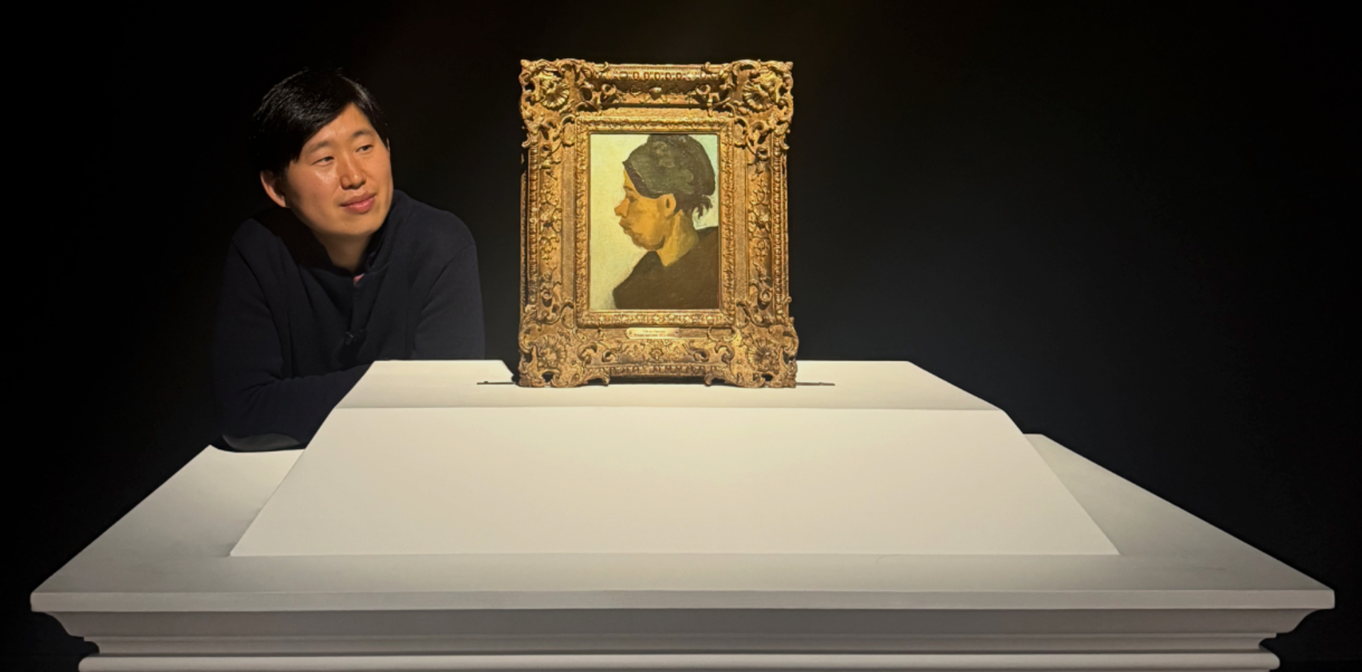 Hong Gyu Shin with his Van Gogh work, Head of a Peasant (January-March 1885), now on loan to the Ulsan Museum of Art Ulsan Museum of Art