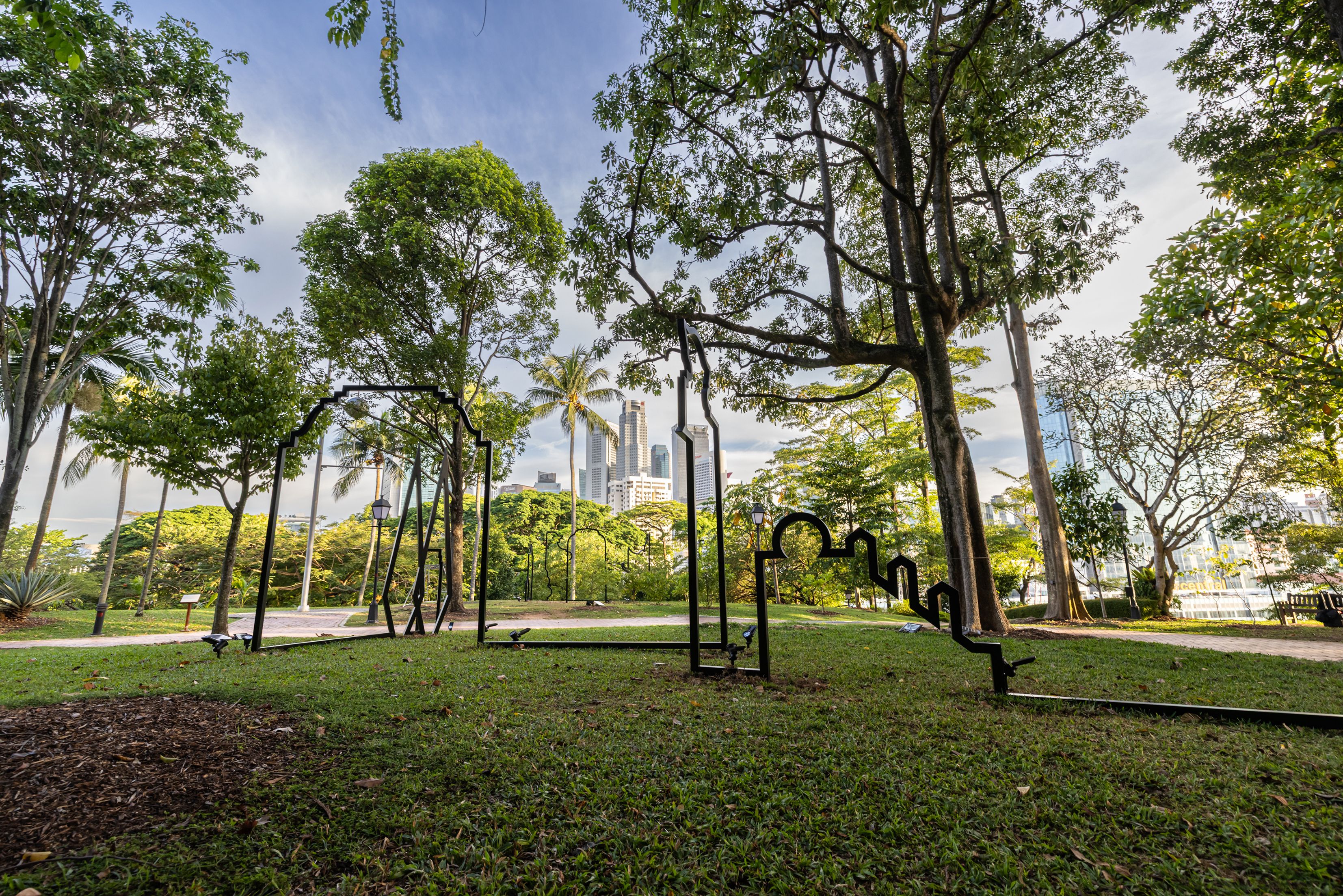 The Indian artist Ayesha Singh's Continuous Coexistences (Singapore) (2025, pictured) is among the highlights of this year’s Singapore Biennale. The sculpture perched atop a hill in Fort Canning Park transforms an architectural line drawing into a dynamic three-dimensional installation. At Art SG, she will show three new wall reliefs from her Evolution series, similar sculptural interpretations of line drawings. The calligraphic works map the evolving forms of Indian column capitals across the second to 17th centuries. Two black-and-grey sculptures will trace the outlines of column capitals from the caves of Karla, Ajanta and Varaha, followed by forms from the Hoysaleswara Temple and the Unesco World Heritage site of Hampi. Deliberately placed behind these two visual timelines will be a third sculpture in brass, documenting column capitals from ancient stepwells in Gujarat and Rajasthan—civic water structures commissioned by female patrons, who have historically been overlooked. By distilling forms from these sites into a reflective material, Singh critiques the erasure of women while also reasserting their significance.