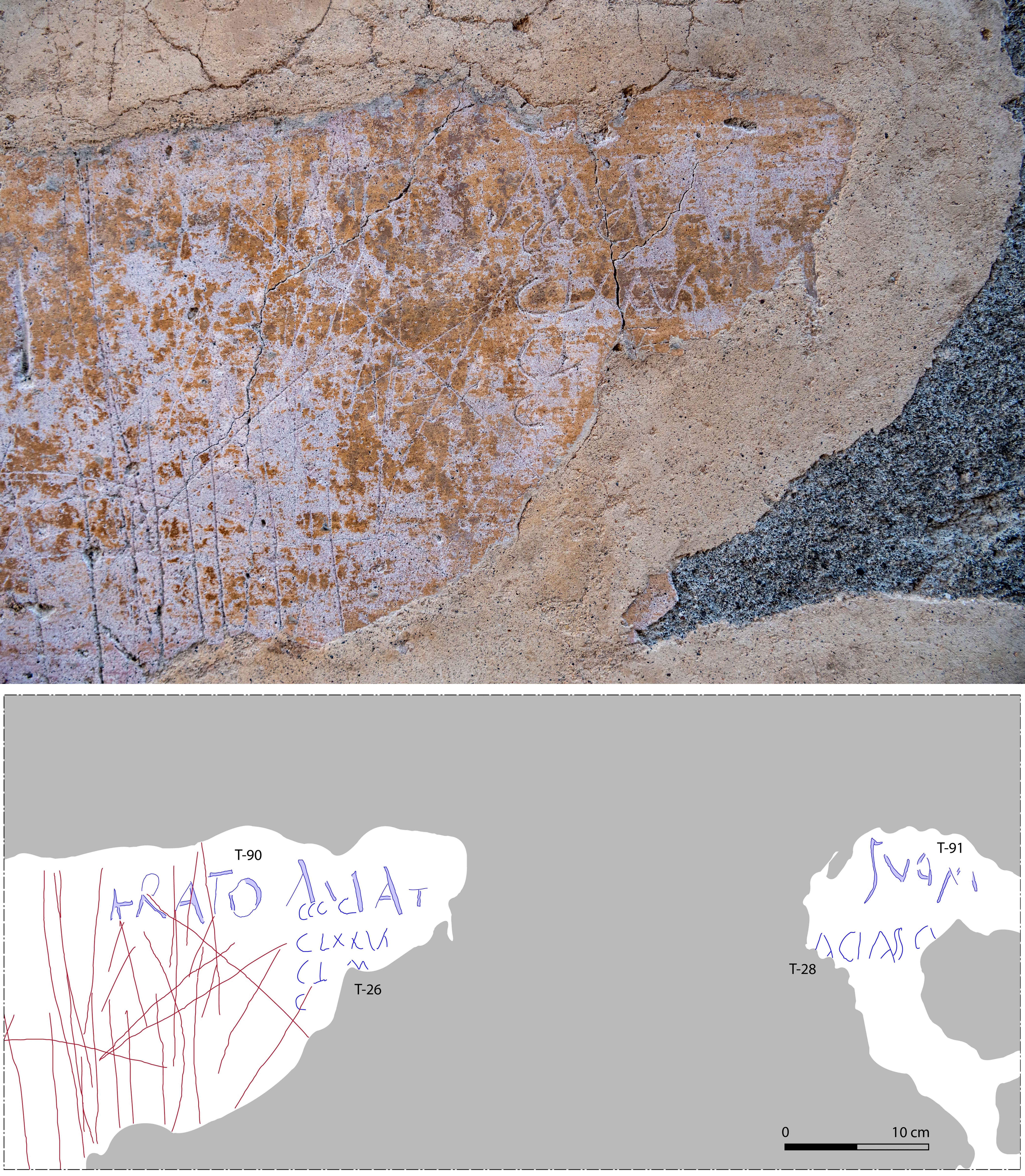 Archaeologists have analysed 79 new scribblings carved into the plaster wall of a corridor. The space was once a passageway between two theatres, in which chatting residents socialised, took shelter from the heat and occasionally participated in less innocent pastimes.