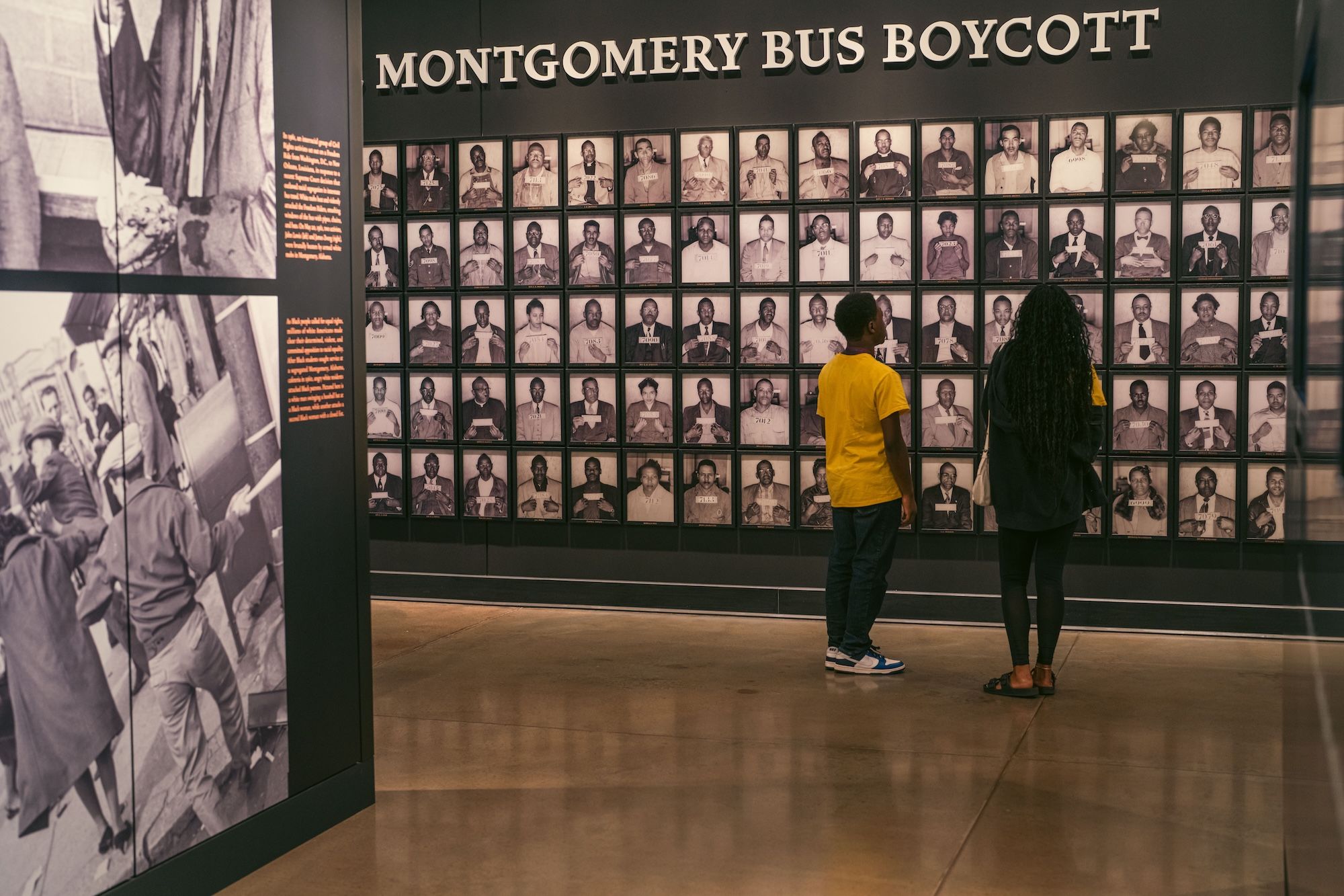Mugshots of participants in the 1955-56 Montgomery bus boycott on display at the Legacy Museum in Montgomery, Alabama Courtesy of the Equal Justice Initiative