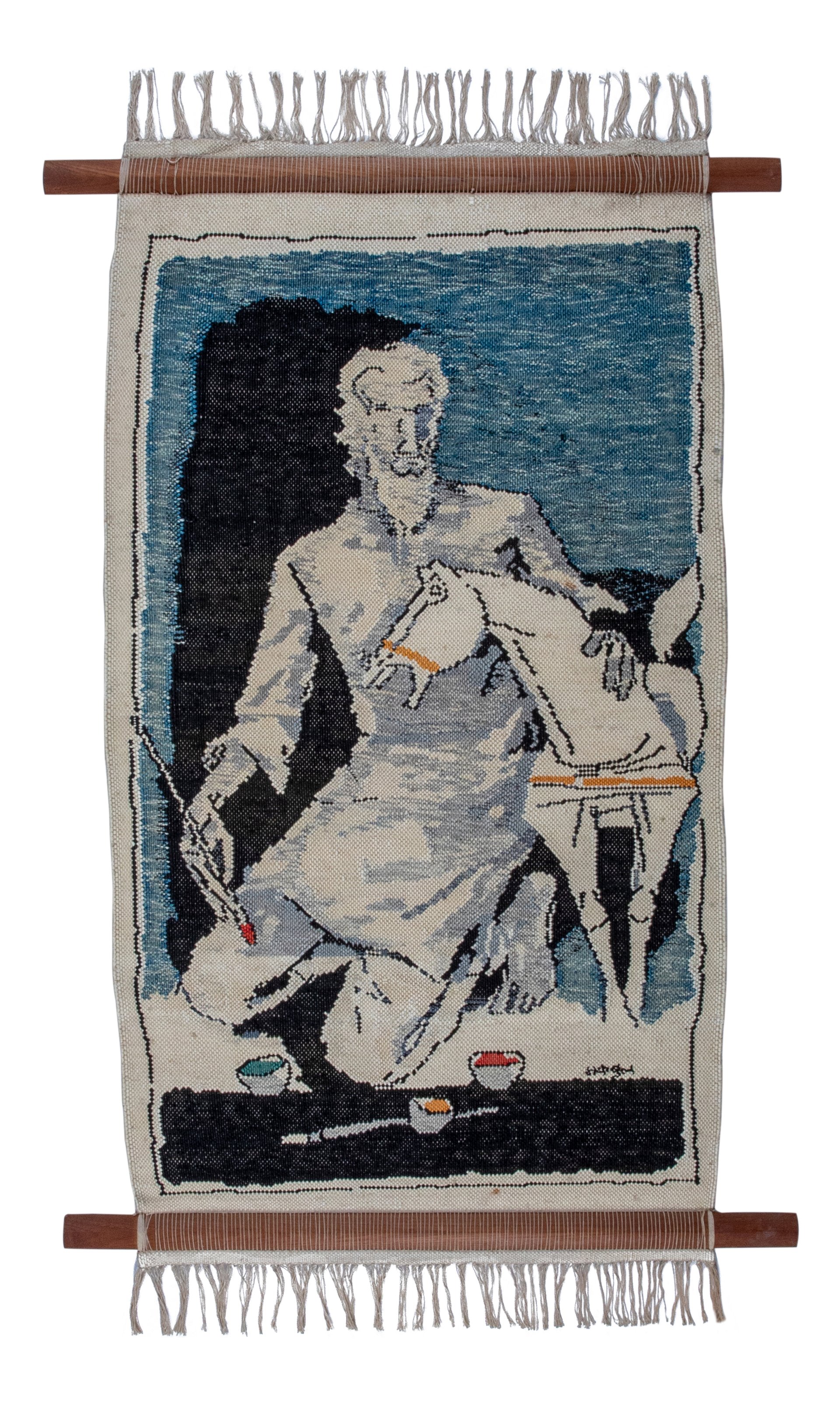 According to Shenoy, one such tapestry in the museum’s collection, The Artist and his Model, showcases Husain’s “perpetual exploration of other mediums; it expresses the same fluidity and freedom as his paintings in the form of tapestry”. It depicts a human figure, representing Husain himself, together with a horse, perhaps his most famous motif and one that reappeared in his work over the decades. But, for Shenoy, this tapestry is all about the nature of artistic inspiration: “All of the other horses in his paintings are shown in full flowing energy, but this one shows Husain in an intimate closeness with his inspiration.”