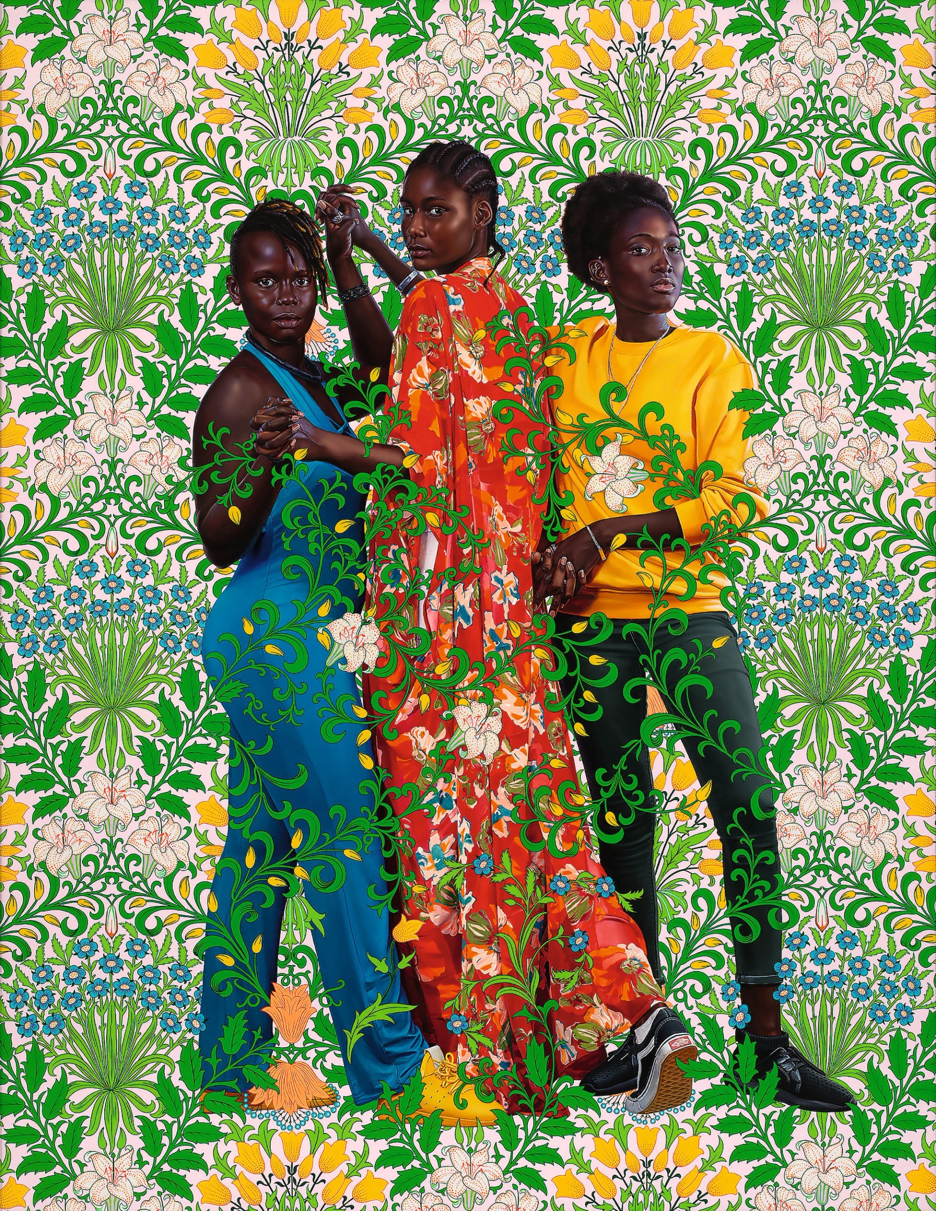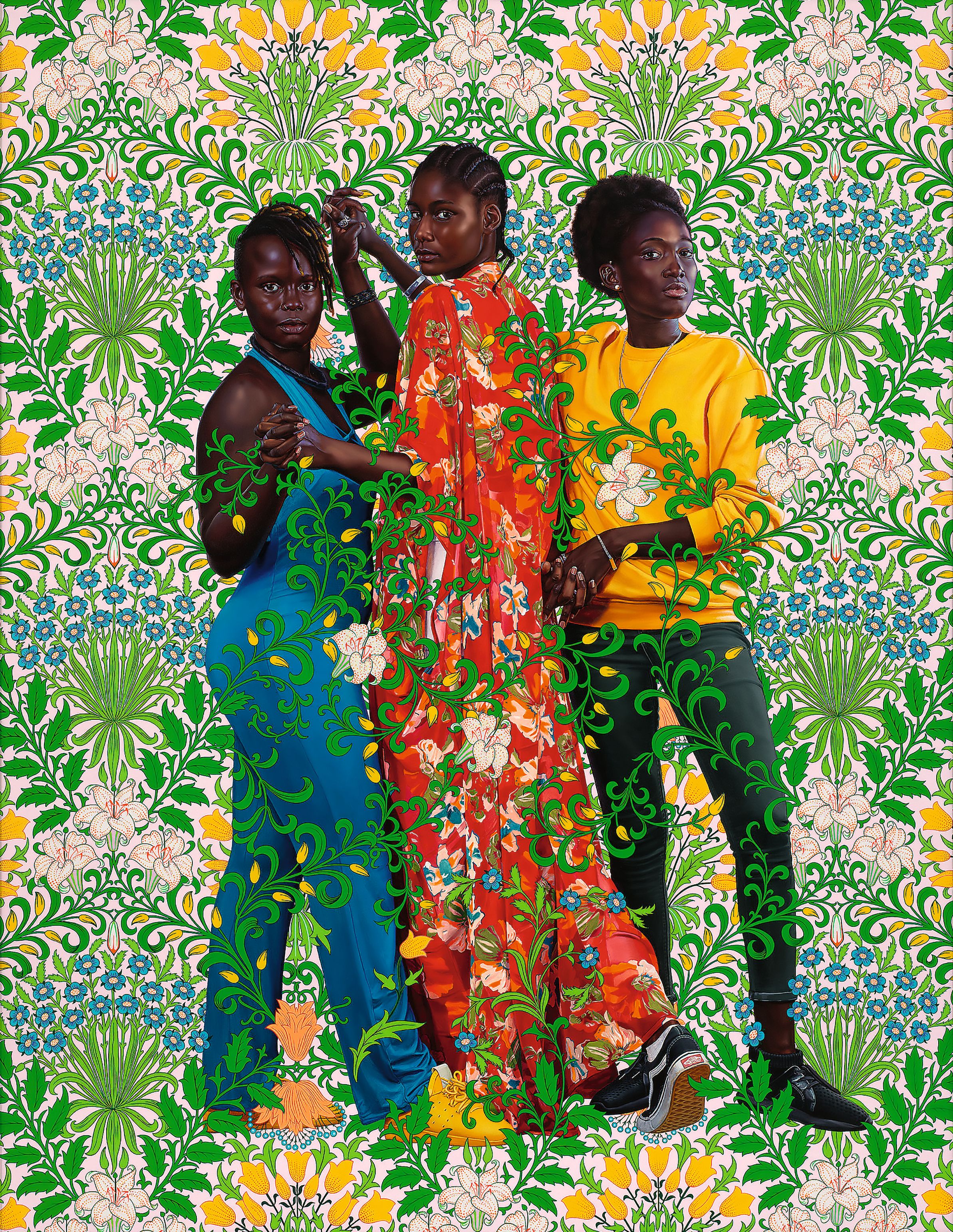 Kehinde Wiley’s The Three Graces (Coumba, Mariama, Rokhaya) (2023) © the artist; courtesy Stephen Friedman Gallery, London