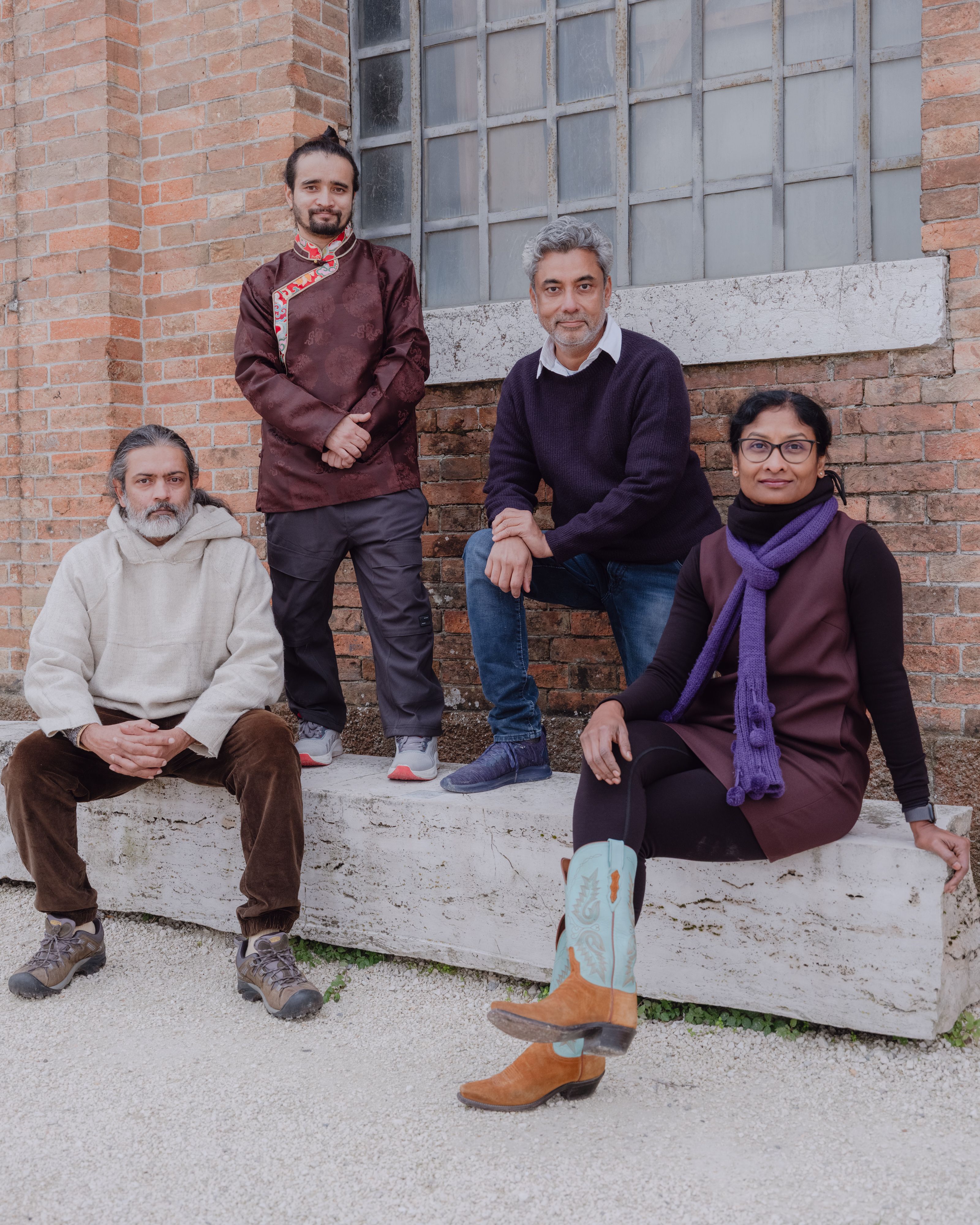 Four of the five artists representing India, from left to right: Asim Waqif, Skarma Sonam Tashi, Alwar Balasubramaniam (Bala) and Ranjani Shettar (participating artist not pictured: Sumakshi Singh) © Joe Habben