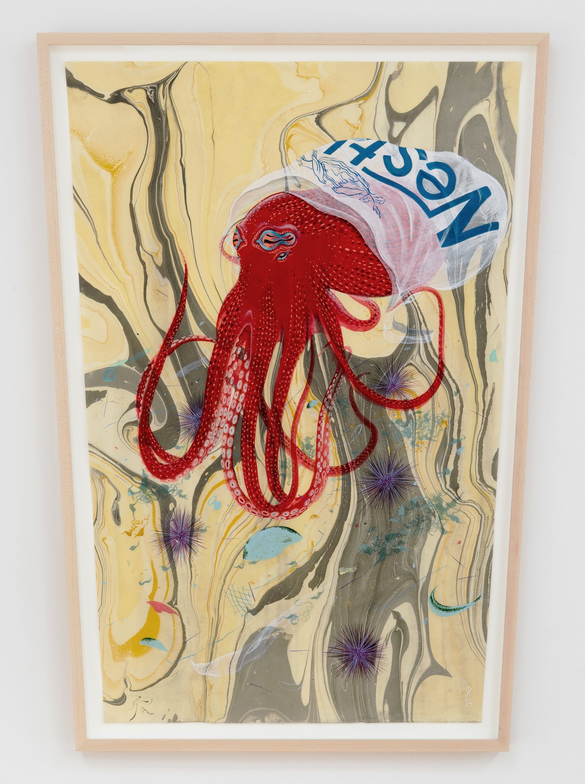 The Montréal-based Galerie Hugues Charbonneau, for instance, has devoted its stand to a solo presentation of works on paper and sculptures by the Sri Lankan Canadian artist Rajni Perera. The works on paper from her Phylogeny series, priced at $16,000, depict animals adapting to increasingly toxic environments, from developing additional eyes and limbs to making use of the trash littering their habitats—touching on legacies of environmental exploitation, colonial control and displacement that resonate with the histories of Mexico and Latin America more broadly.