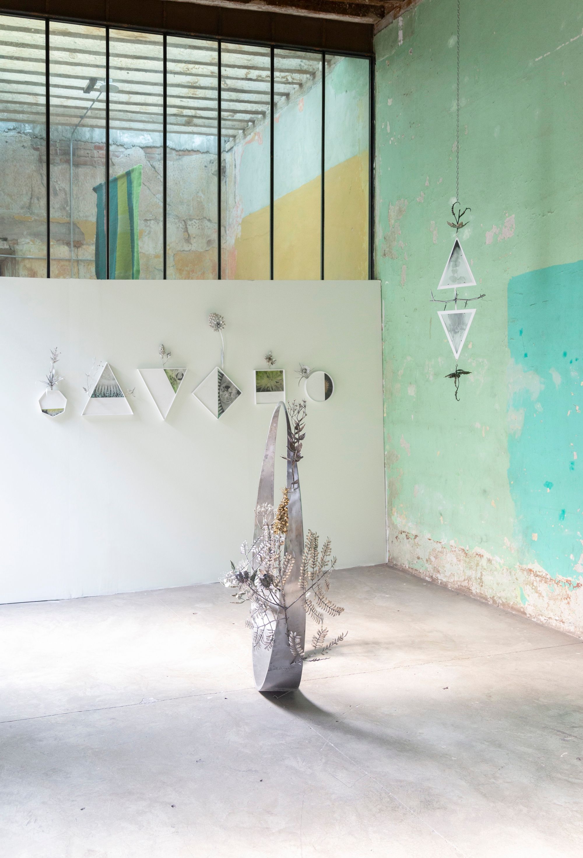 Works on view range in price from $2,200 for smaller wall-mounted works to $12,000 for the large metallic sculpture sprouting plants at the centre of the room. “This large circular piece, Objeto de monte para Abrircaminos, is a spiritual and botanical portal that for the artist represents a path into abundance,” a Saenger staffer explains.