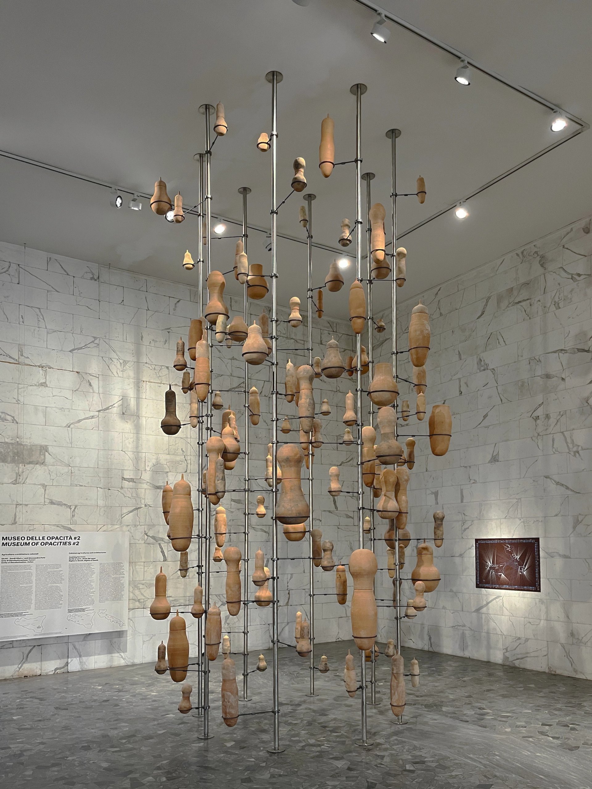In the installation Rights to Seeds, Rights of Seeds (2025) at Museo delle Civiltà in Rome—part of the Monoculture Meltdown project—various seed varieties were displayed in ceramic vessels in an homage to traditional seed storage methods in southern Italy Photo: Cooking Sections