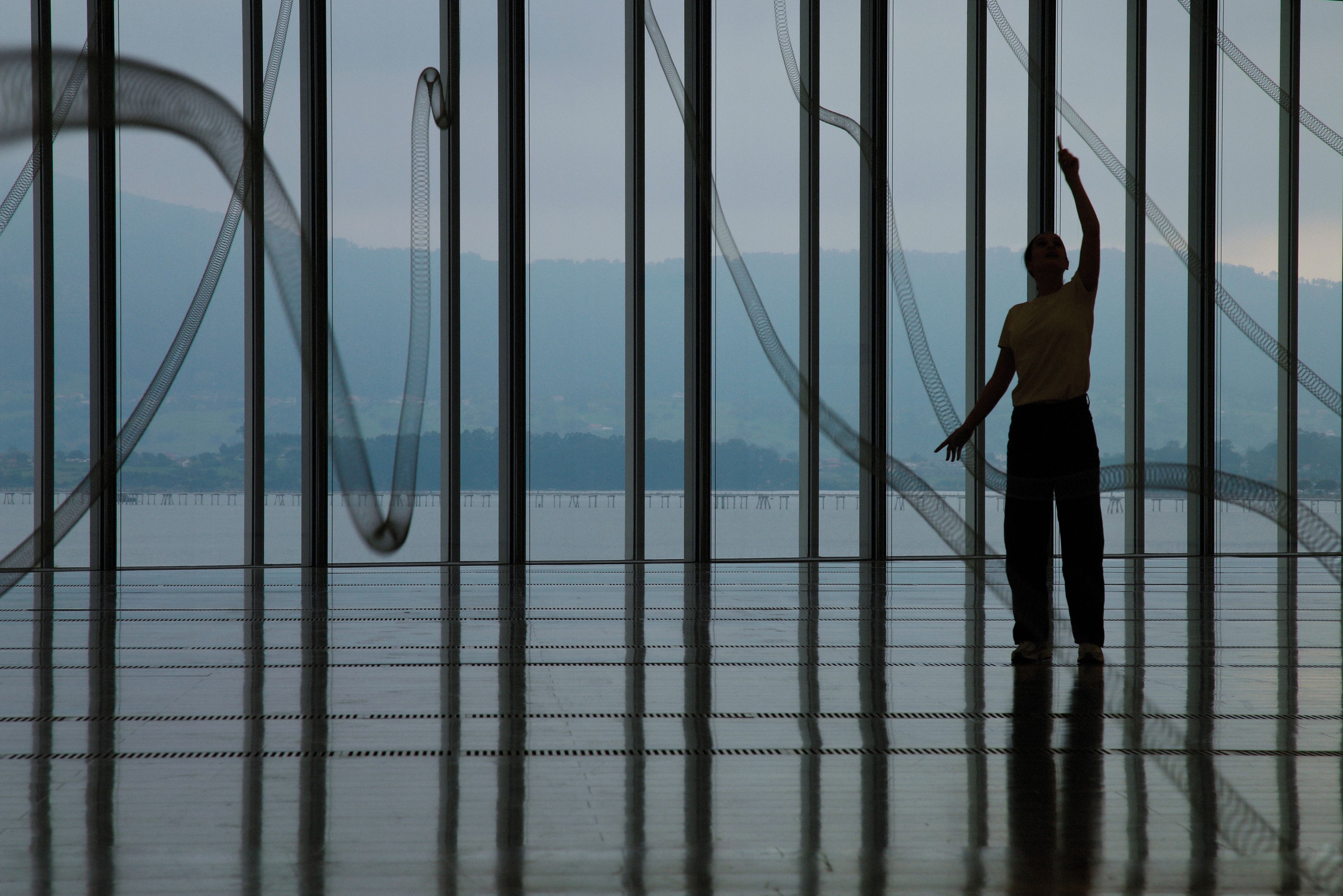 For Waves Lost at Sea, Pascual and Schwabe have gathered together the stories, rhythms and patterns of 11 significant lost waves worldwide, from Mundaka to Ala Moana in Hawai‘i, Cabo Blanco in Peru and El Marsa in the Western Sahara, all of which owe their demise to human-originated alterations of the ocean floor. The information about these waves has been translated by the artist and musician Duval Timothy into 11 musical compositions, which play as performers respond by activating 11 lengthy suspended springs or ‘slinkys’ that extend throughout the Centro Botin, which itself looks directly onto the Atlantic Ocean.