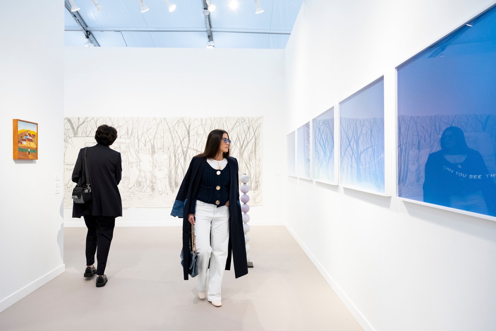 Hometown exhibitors echo her sentiment. Anat Ebgi, whose namesake gallery also has a New York location, describes Frieze Week as a “very concentrated moment of international visibility” and that reflects the “distinct” quality of the city’s collecting community. She recommends out-of-town visitors use the fair as an “anchor point” to explore the local scene, describing her gallery’s stand this year as a “marquee to tease” its programming, with a group presentation of new work by Anabel Juárez, Sarah Lee, Ileana García Magoda, Soumya Netrabile, Erin Wright, Sarah Ann Weber and Jemima Murphy.