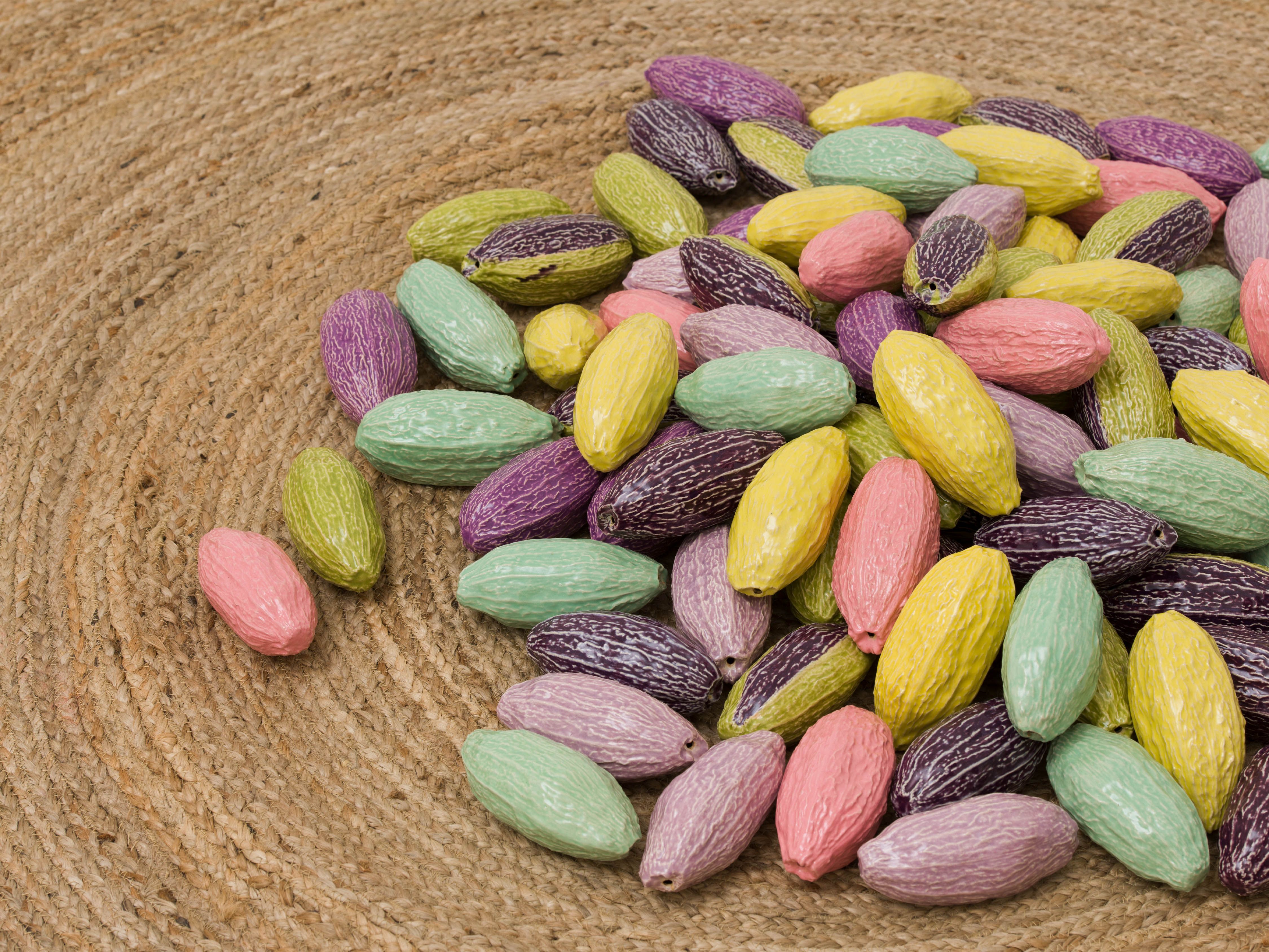 Her installations and individual sculptures combine a wealth of things and techniques, often all at once, from found objects to time-honoured sculptural materials like bronze and marble; and from carving to casting and crocheting. Colour plays a vital role in her work, in the varied hues of textiles or plaster. And she creates forms as diverse as seeds and fruits, mats and nets, pillows and blankets and architectural structures.