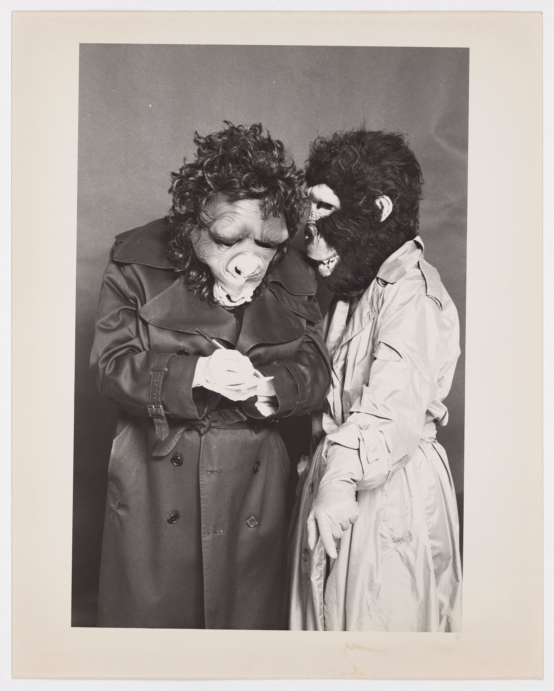 Juarez and Gilbert’s own working approach was also inspired by the Guerrilla Girls’ ethos. The show originated with the GRI research group Expanding the Study of Performance in Women Artists’ Archives. From there, GRI staffers with different specialities joined forces to develop the content for the show, dividing up boxes of material to comb through. These curatorial team members—Thisbe Gensler, Alex Jones, Daniela Ruano Orantes and Megan Sallabedra—are credited alongside Gilbert and Juarez in the exhibition wall text.
