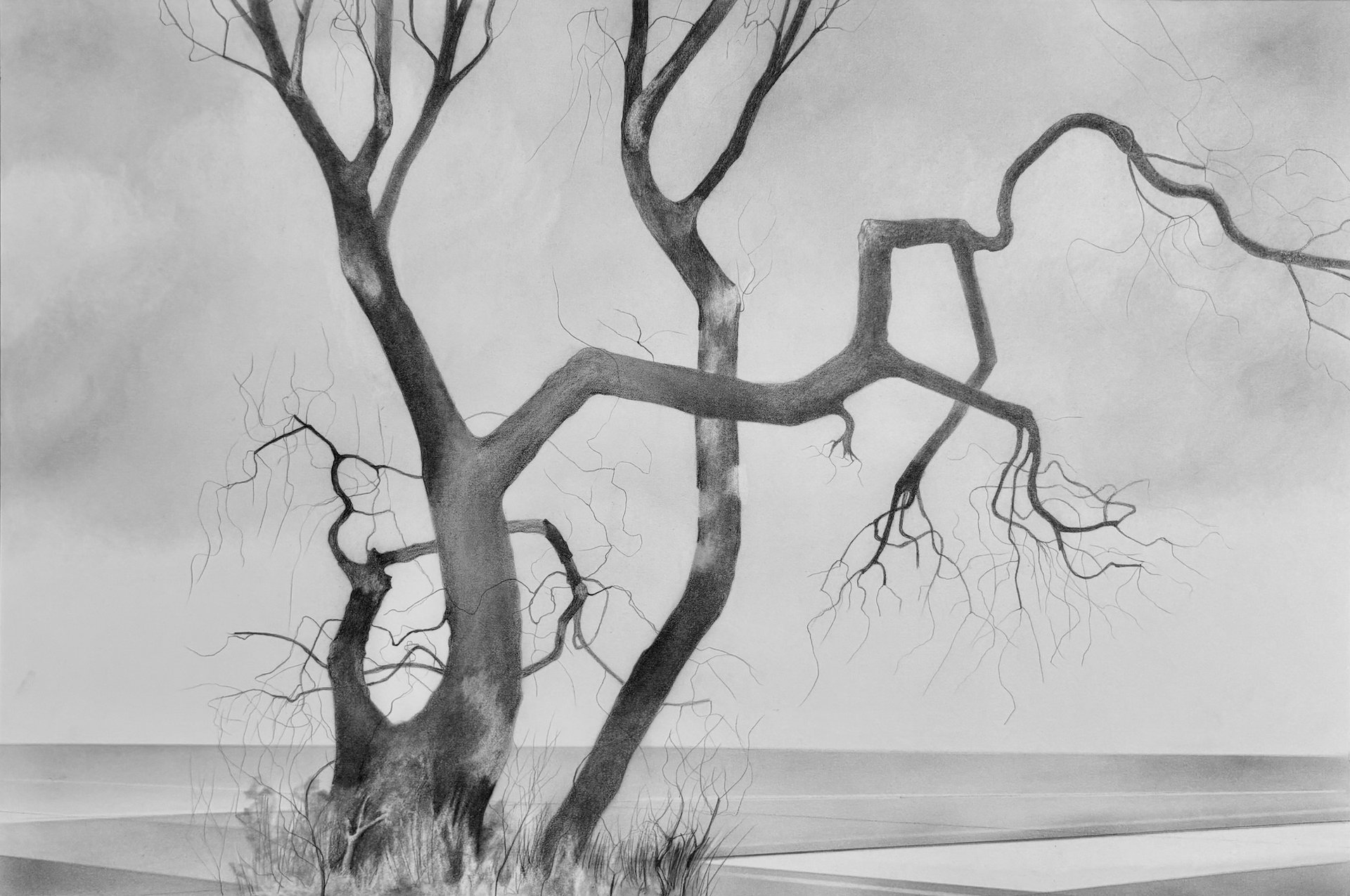 Adam Ross’s Living in a Science fictional World (After the fire, #1) (2025), a graphite drawing in a small series he made shortly after the Eaton fire Courtesy the artist