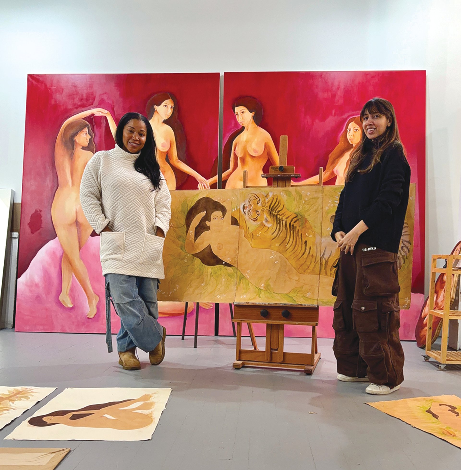 Tifrere at Hiba Schahbaz’s studio with her latest acquisition, Nude (2026) Courtesy Mashonda Tifrere