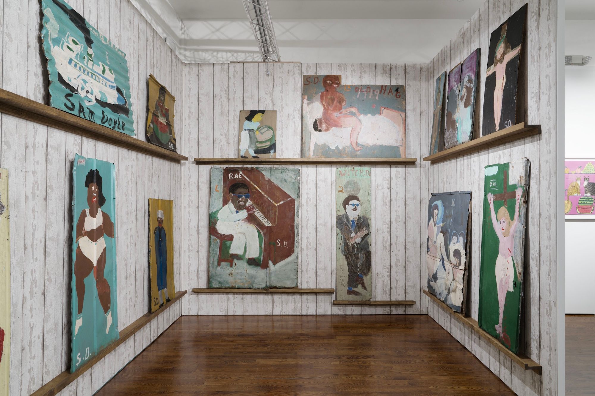 Born in 1906, Doyle became a local storyteller in the St Helena community of Frogmore. His portraits and narrative paintings draw on a cast of neighbours and scenes from oral histories passed down through generations. Residents would have recognised depictions of local root doctors, Doyle’s own grandmother and historical figures such as Robert Smalls, who escaped slavery during the Civil War by commandeering a Confederate ship and delivering it to Union forces. Beyond local subjects, Doyle also depicted prominent figures including Martin Luther King Jr., Ray Charles and Jackie Robinson, orienting his work as both a cultural record and reflection of change in the United States.