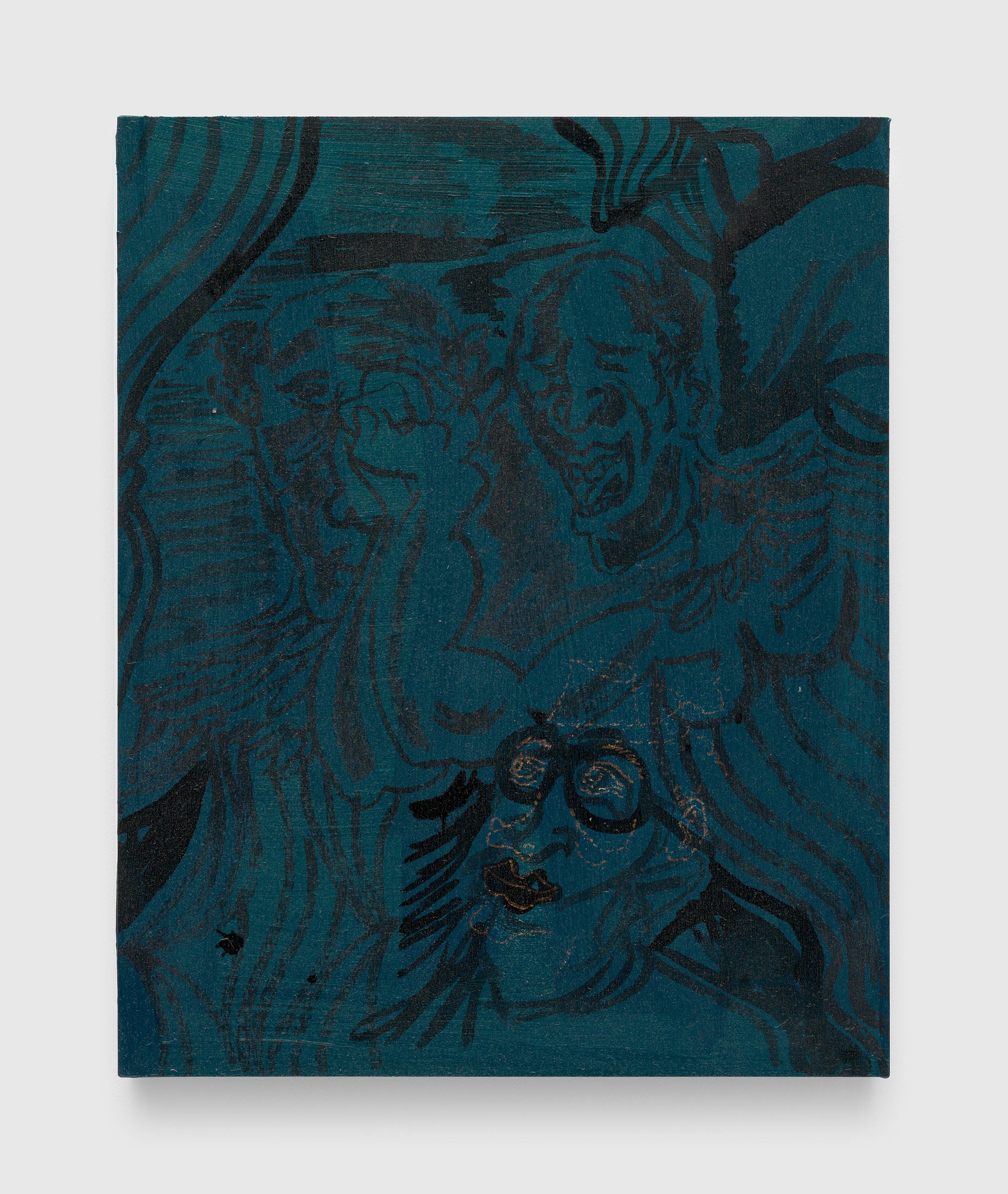 Though the scale is smaller, the ambitions are no less grand. Eisenman’s series focuses on three primary locations of “middle-class living”: home, work, beach. A man sketches a vase of flowers, a woman sits forlornly on the sand, a father stares at his phone as two kids crawl around him. These heavily overworked and reworked pieces are filled with trash and detritus, shadows and darkness. The effect is uncomfortably claustrophobic. These are paintings filled with ennui and tedium, a discomfiting sense of powerlessness and boredom, as time ebbs away and the world falls apart. Eisenman’s cryptic approach has always made her something of a painter’s painter, but these smaller, contemplative, critical images are her at her most intimate, and most inviting.