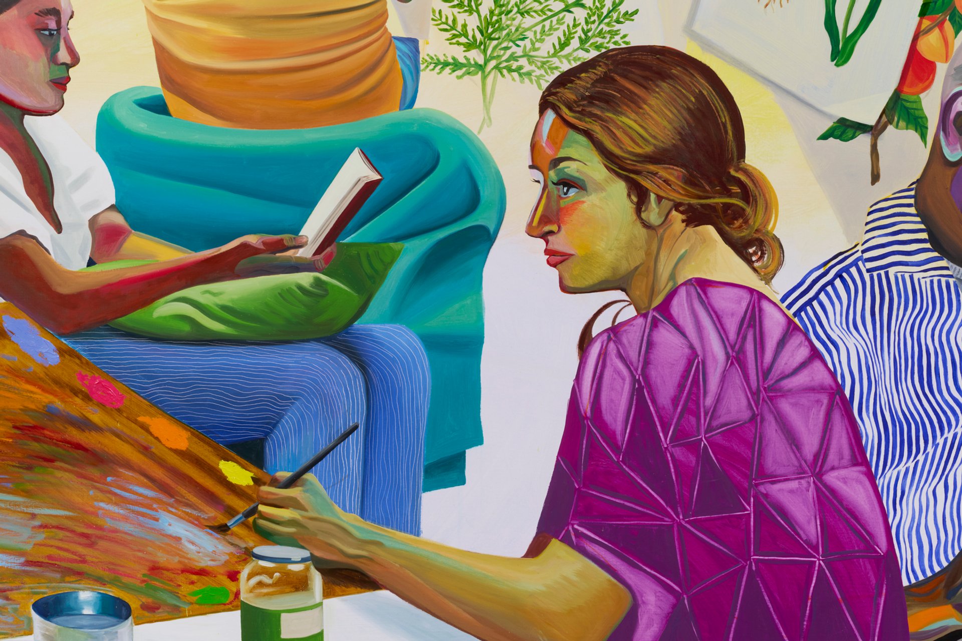 Detail of Aliza Nisenbaum’s Reading Circles/ Weaving Dreams/ Seeding Futures (2025). Her work is being shown in the Embodiment section at Chicago Expo Photo: Izzy Leung; courtesy the artist, Anton Kern gallery and Regen Projects