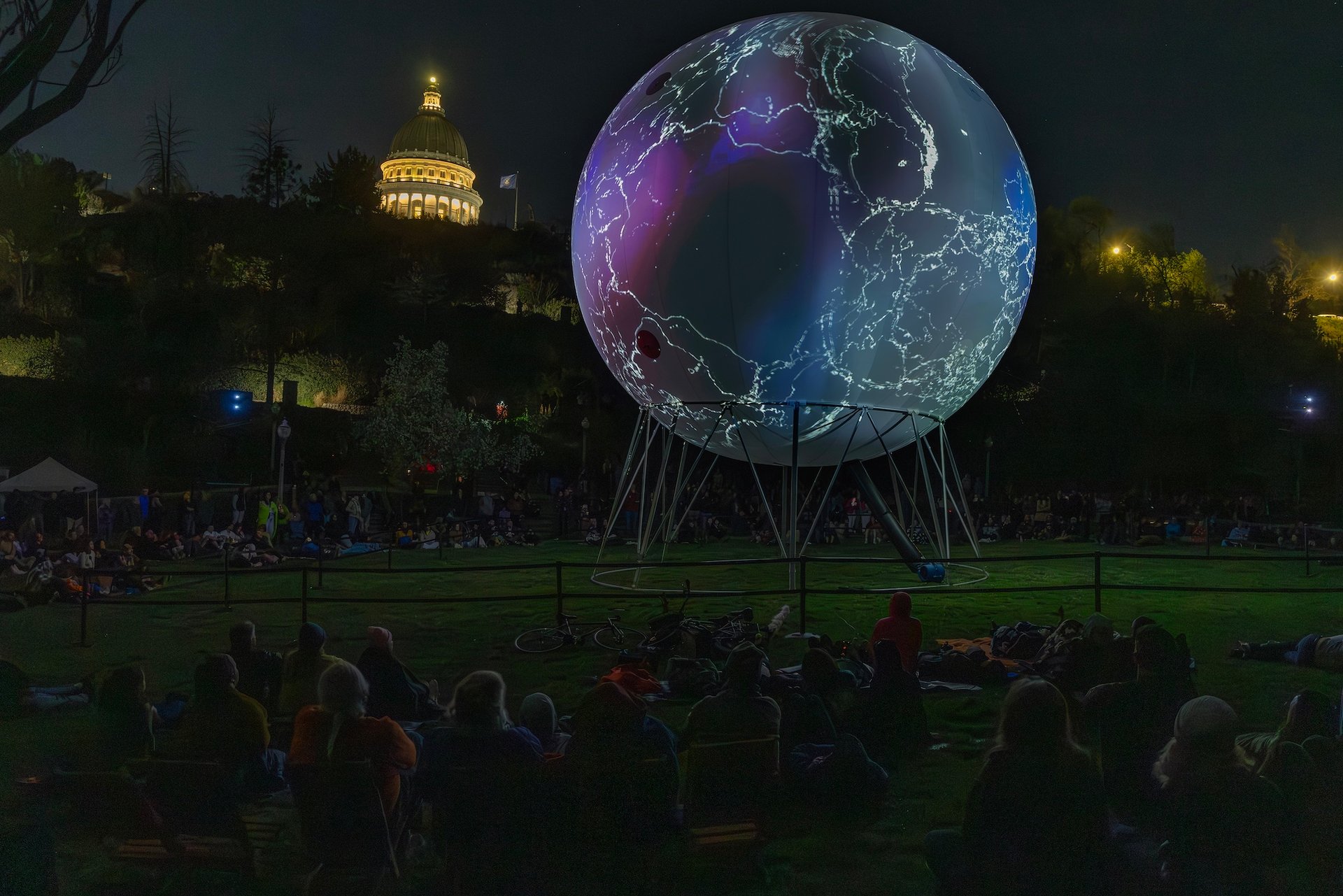 For ten days between 26 March and 4 April, Olafur Eliasson presented A symphony of disappearing sounds for the Great Salt Lake, a multimedia installation projected onto a luminous sphere in Memory Grove Park, a public green space tucked into one of the Salt Lake City’s seven canyons below Capitol Hill. It was the Icelandic Danish artist's first public work in Utah.