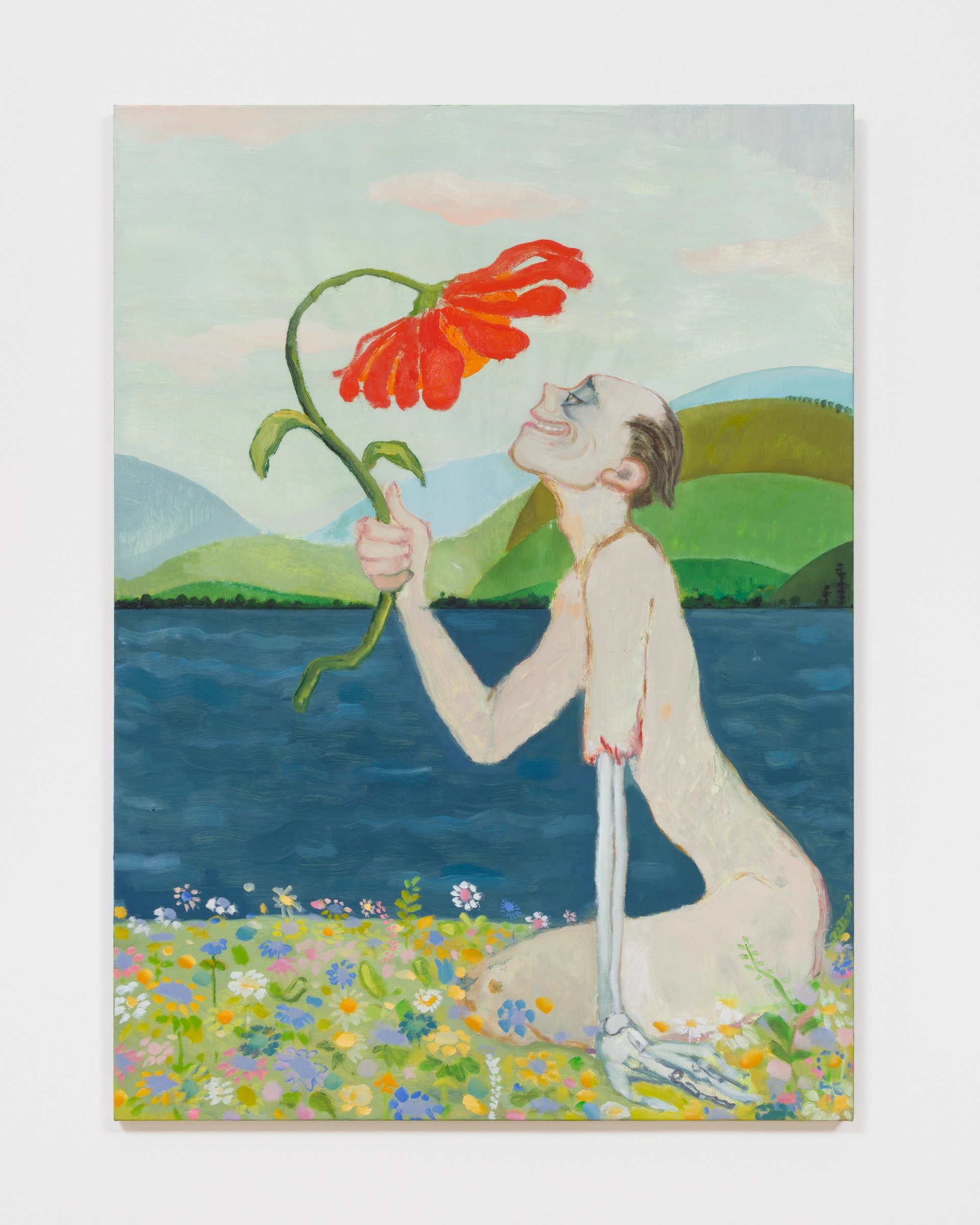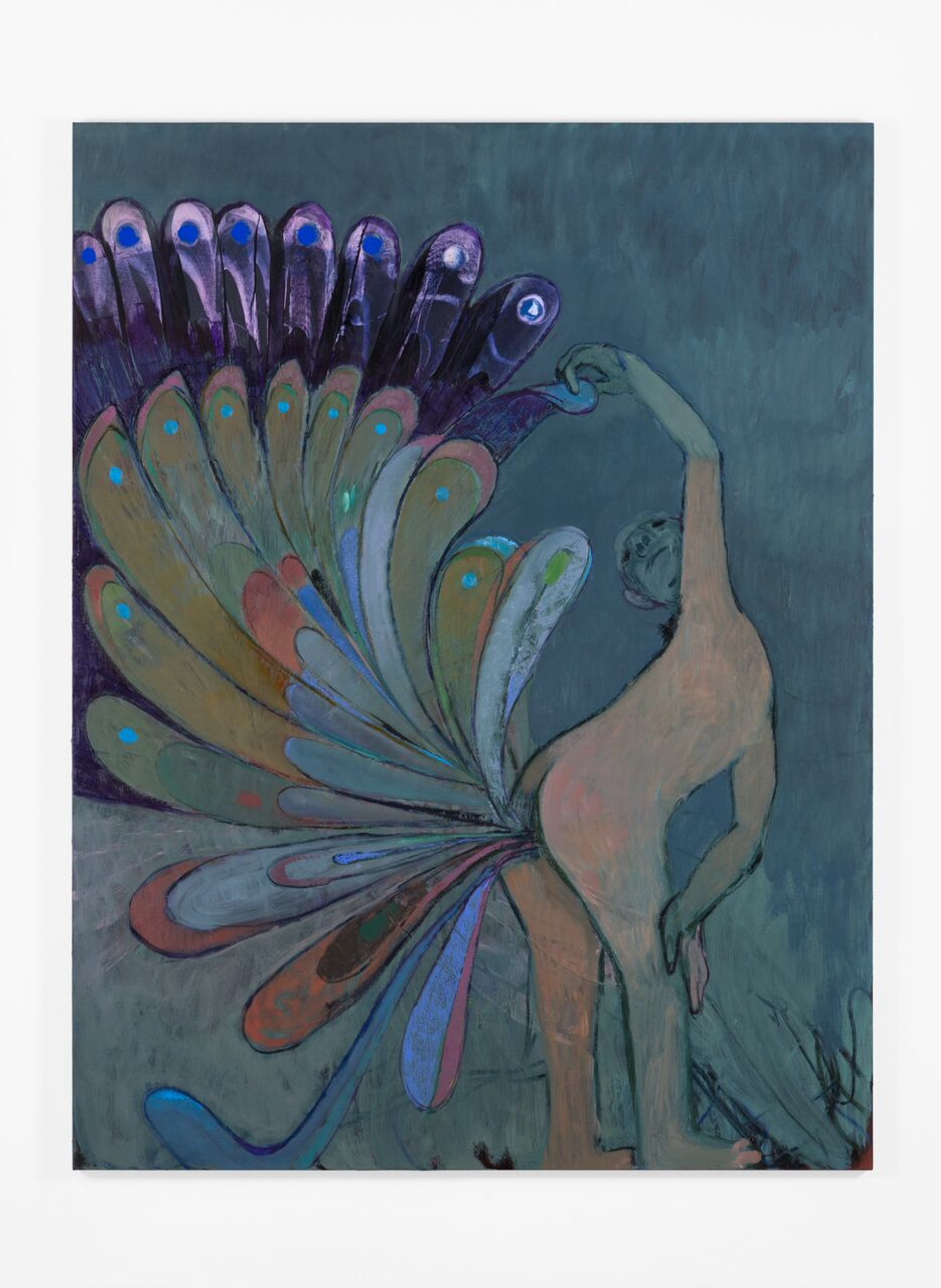 Notionally figurative, they reflect an elastic idea of how the body might be represented through paint, as figures appear in unlikely juxtaposition with other bodies and beings—even morphing into plant or animal forms—and occupy landscapes and spaces that are always infused with atmosphere and often potent with threat.