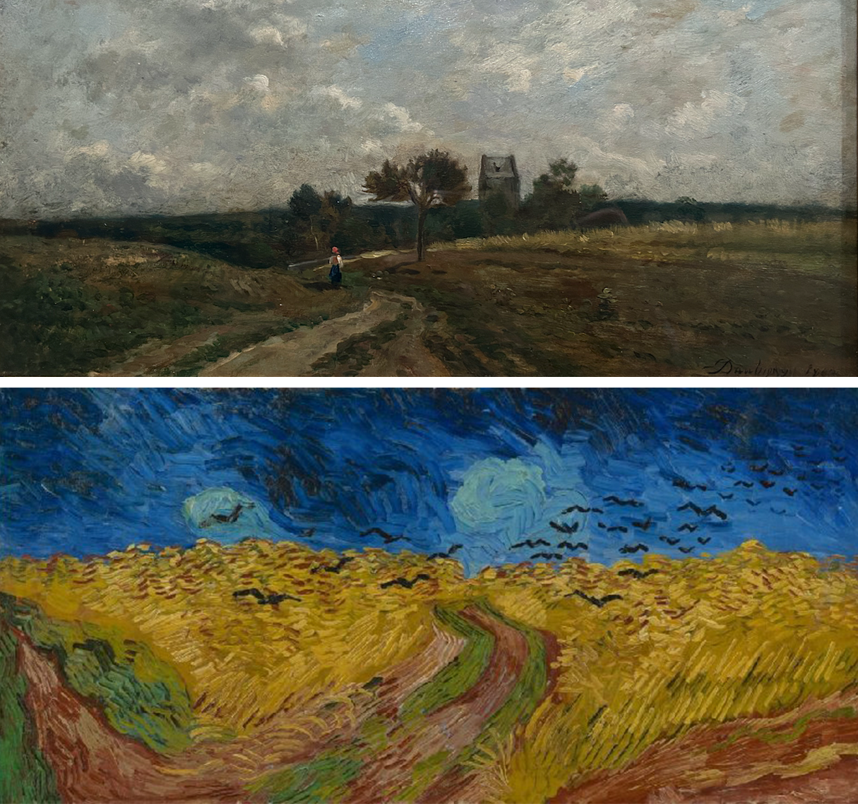 Daubigny’s Woman crossing a Field (1869) and Van Gogh’s Wheatfield with Crows (July 1890)