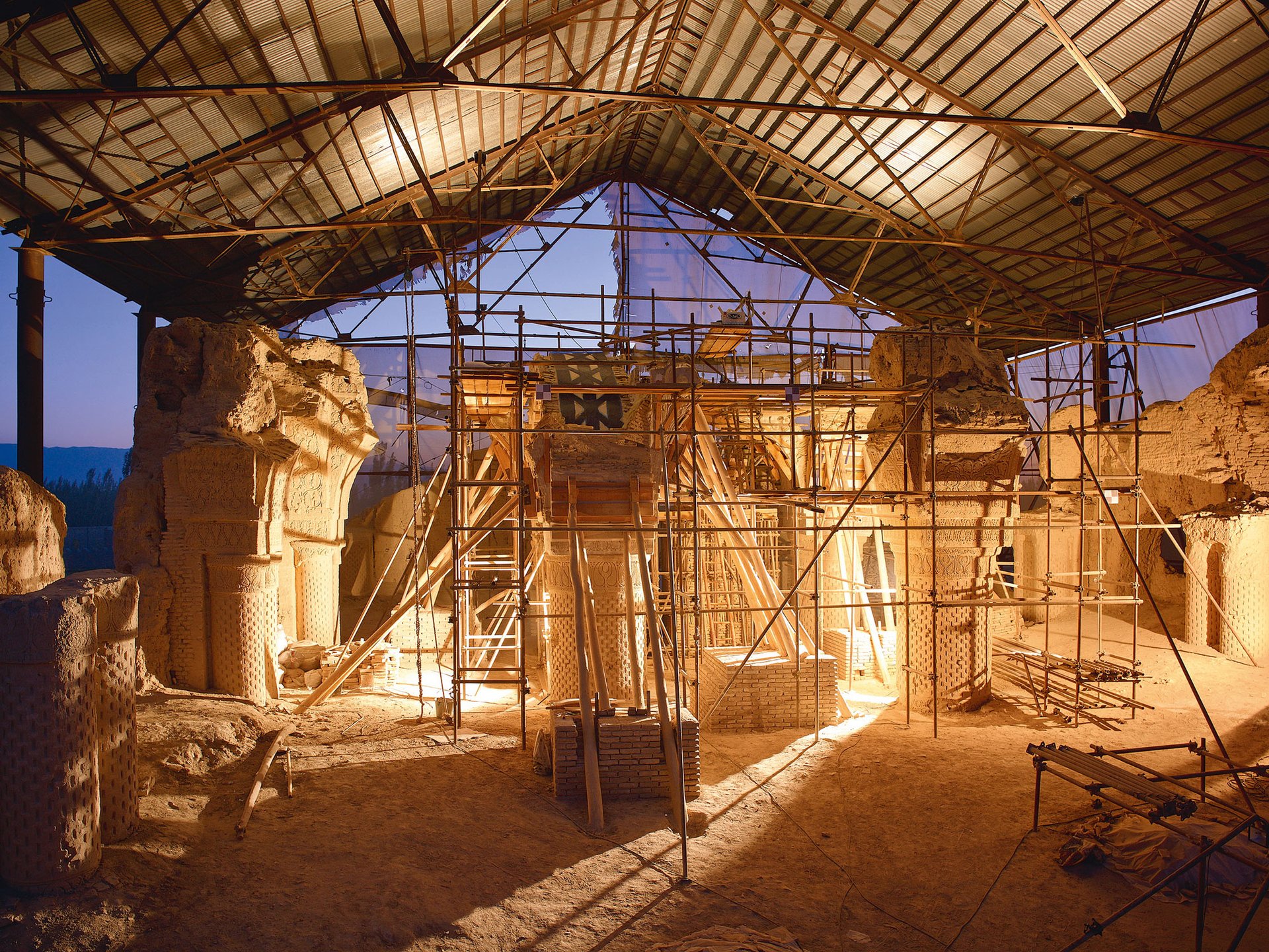 The Noh Gunbad mosque, also known as Haji Piyada, during its recent restoration. Dating back to the ninth century, it is probably the oldest mosque in Central Asia Photo: Aga Khan Development Network/Simon Norfolk
