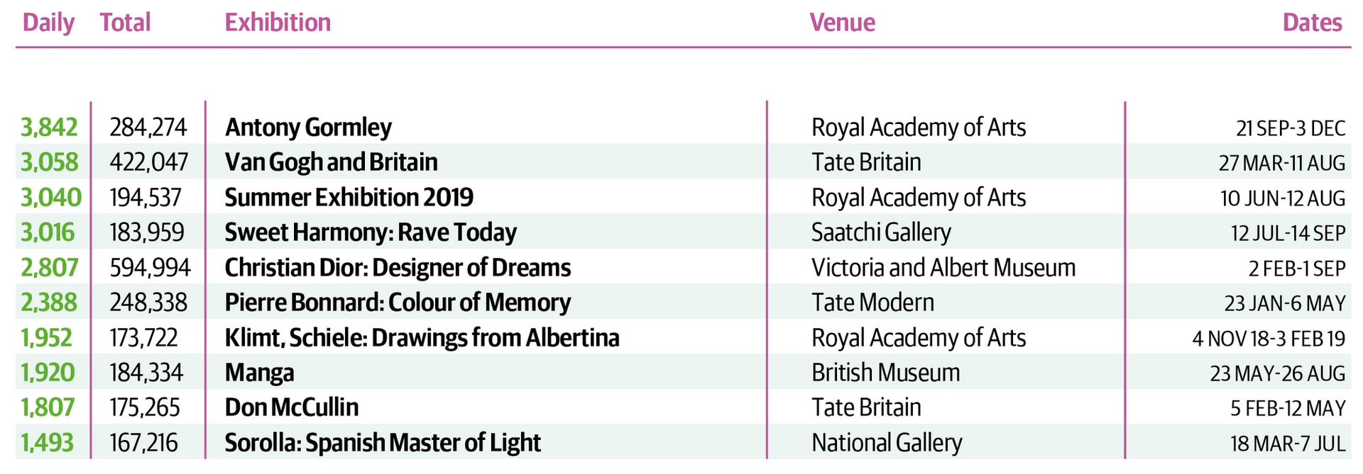 • For The Art Newspaper’s full Art’s Most Popular visitor figures survey, see our April issue. To read a selection online, see Art’s Most Popular 2020