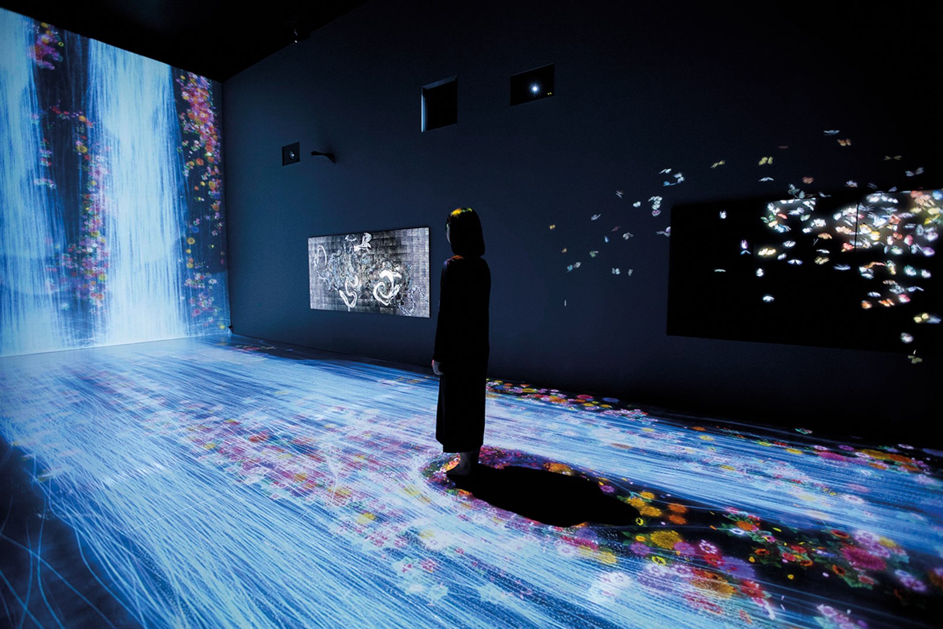 The Instagram-friendly installation of teamLab's Transcending Boundaries at Pace London in 2017 featured a virtual waterfall © Teamlab and Pace Gallery