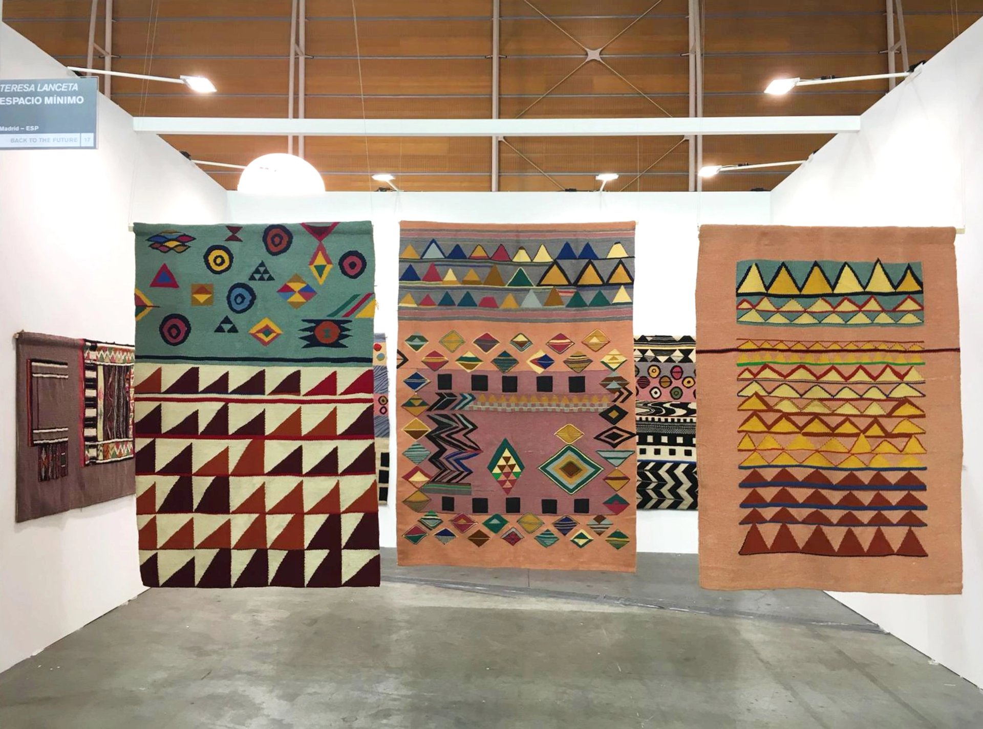 Teresa Lanceta's tapestries on the booth of Espacio Minimo Courtesy of the gallery