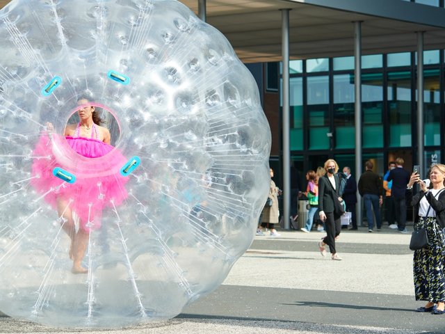 In Basel, however, Gove is hardly well-known, so at the Volkshaus, Smith will lead informal discussions about arts education funding in Europe, as well as creating more “joyous” happenings and testing the water to see if an Art Party candidate might stand a chance in the next elections to the European Parliament. Meanwhile, the film’s roving troubadour, Flame Proof Moth, is due to perform outside the fair in a Pied Piper-style attempt to lure people to party.