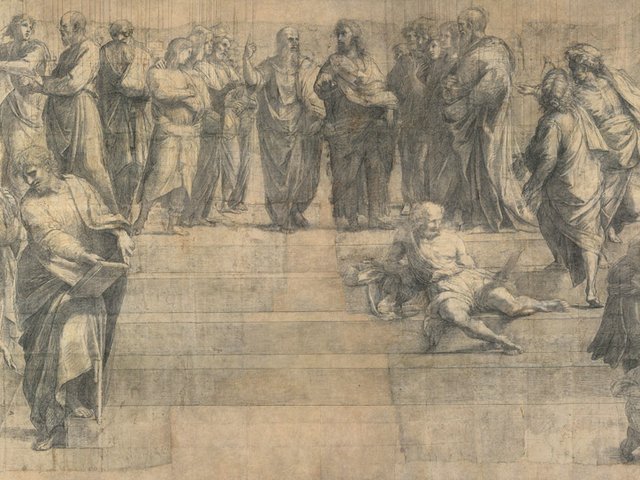 The restoration will also assist in establishing the chronology of the fresco. Arnold Nesselrath, who has directed the cleaning, explains: “At present the sequence most favoured runs “Dispute of the Sacrament”, “Parnassus” and “School of Athens”—placed in this order on stylistic grounds by Bellori. I personally favour the suggestion made about ten years ago by Bram Kempers and Matthias Winner, that there are strong reasons for returning to Vasari’s contention that the “School of Athens” was the first fresco painted by Raphael. Meanwhile we have established the fact that the “Parnassus” was the third fresco to have been painted in that room”. The series of booklets on recent restorations, to be published by the Patrons of Art in the Vatican Museums, is about to bring out the first volume, Raphael’s School of Athens by Nesselrath.