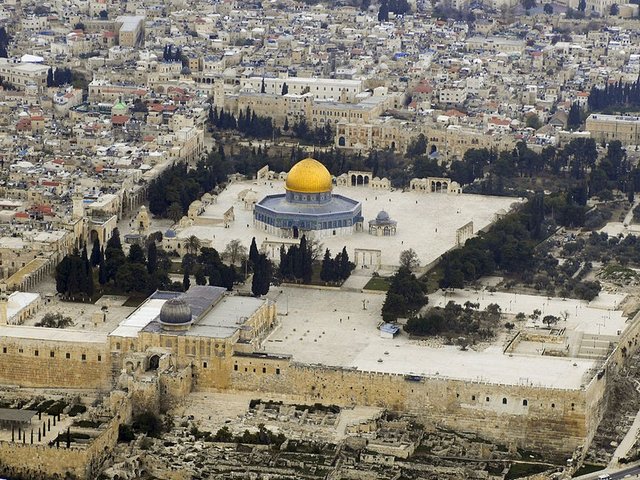 To Muslims, the Temple Mount is known as the Noble Sanctuary and it is the third holiest site in Islam, incorporating as it does two seventh-century Islamic buildings: the Dome of the Rock shrine and the al-Aqsa mosque, which marks the site from where the prophet Mohammed is believed to have ascended to Heaven. The mosque and shrine remain off-limits to non-Muslims.