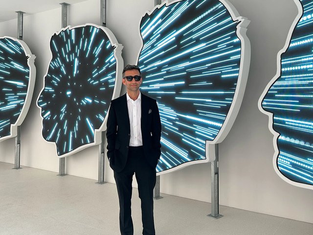 The media artist Beeple (Mike Winkelmann) increasingly sees his interactive video sculptures—one of which goes on show this month at the SXSW London festival and another at The Shed in New York—and social media posts as public art