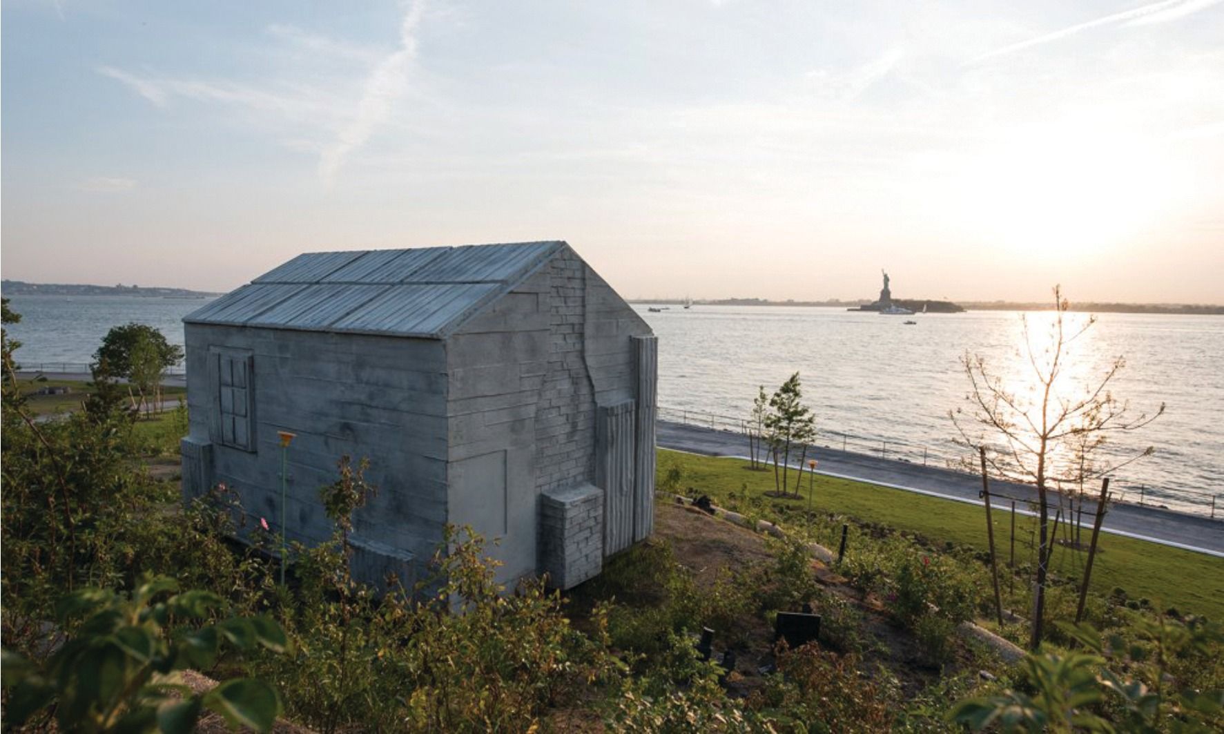 Site-specific concrete cabin stands on a 40ft hill overlooking New York Harbour