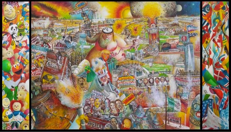 Robert Cenedella, the “Art Bastard”, brings his vision of the apocalypse to a gallery window just a week before the US election