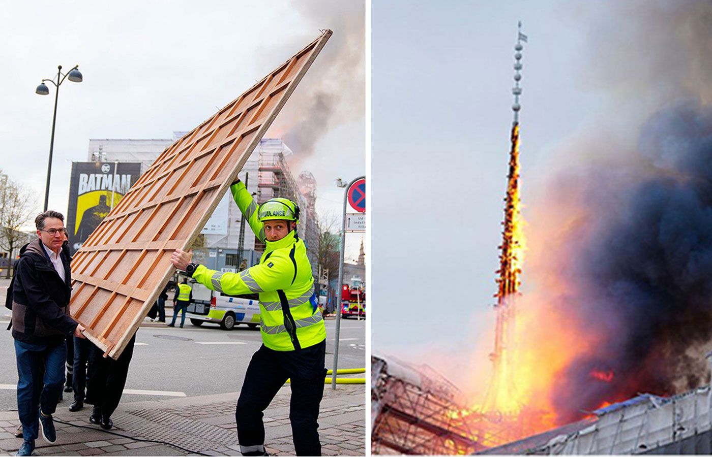 The celebrated early 17th-century Dragon Spire is consumed by fire after conflagration takes hold during historic structure's renovation