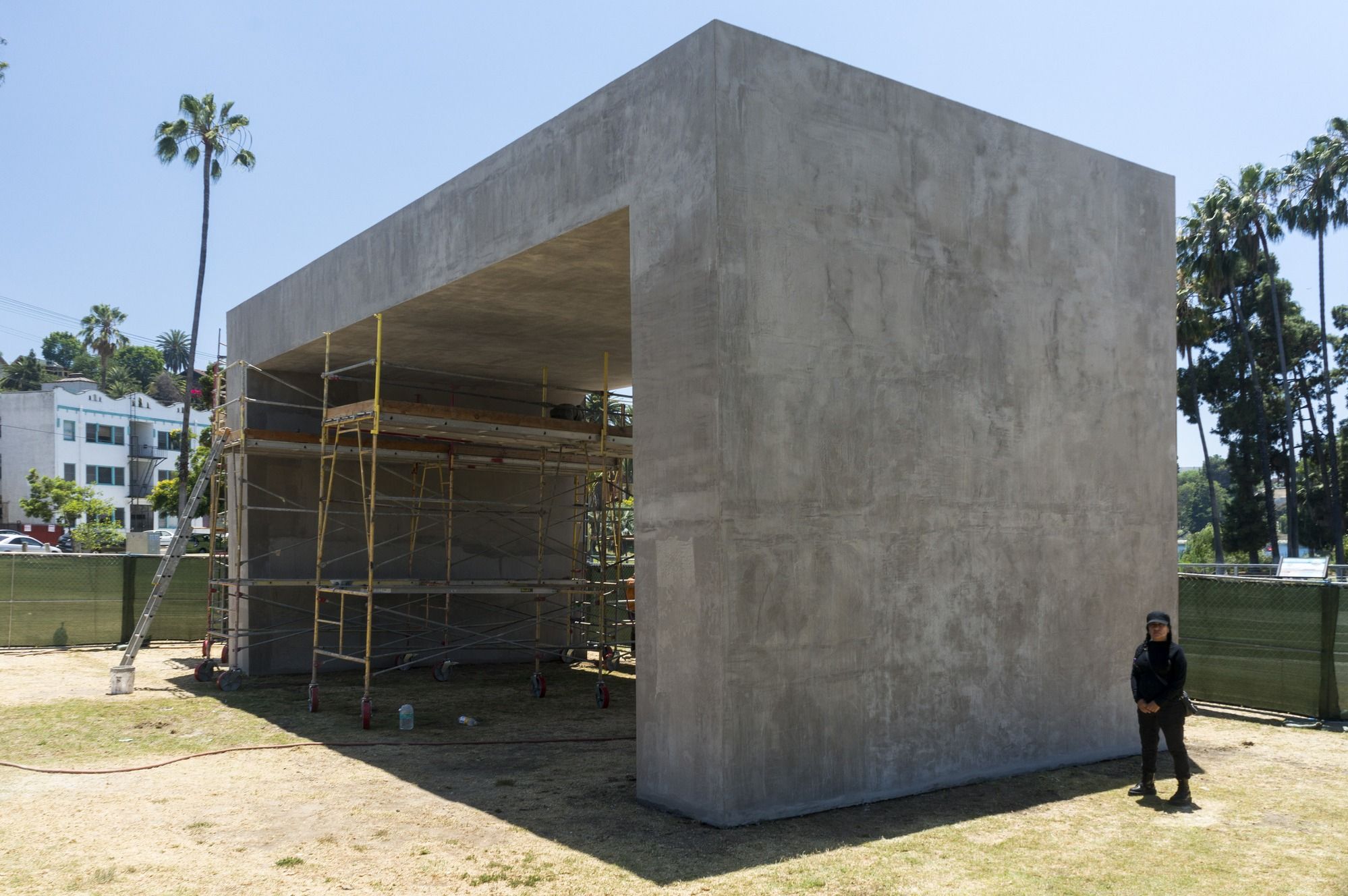 Imposing concrete shelter in Echo Park incorporates debris and residue gathered at homicide scenes