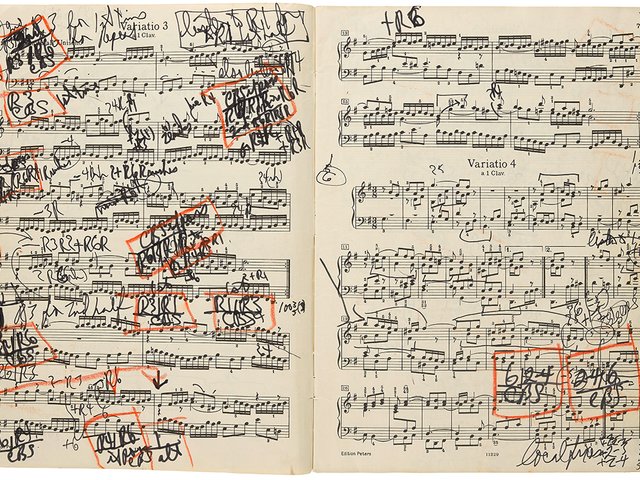 The late pianist’s 1981 annotated score of Bach’s Goldberg Variations is the first of his manuscripts to come to market
