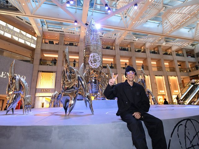 Sneaker crowd turns out in force to see the New York-based artist's six-metre tall rocket surrounded by alien figures