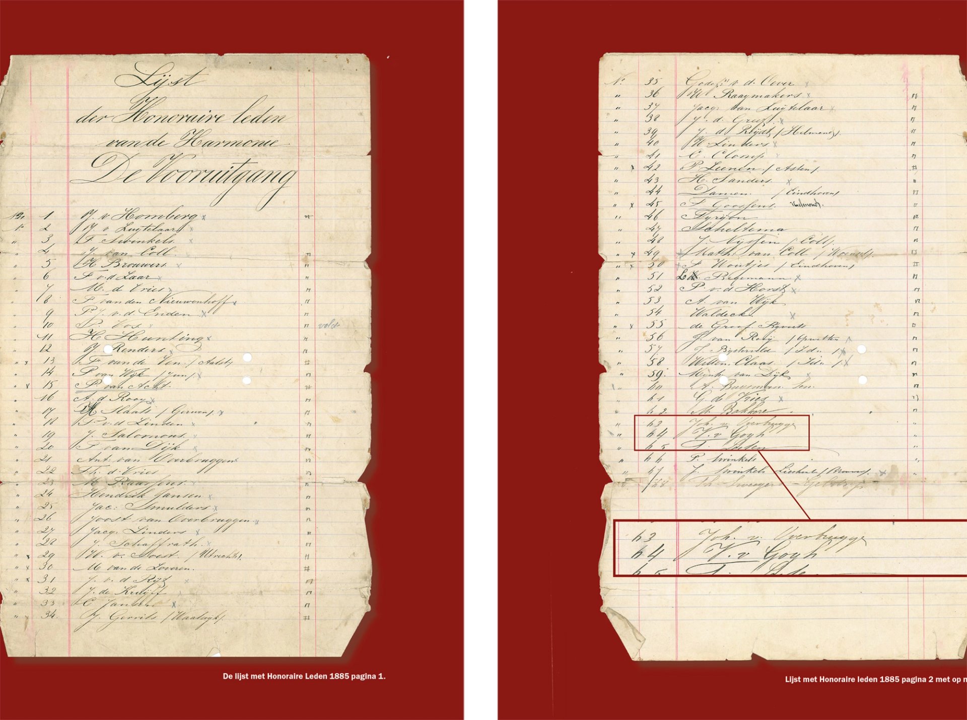 It is now very rare to uncover fresh documentary evidence about the artist’s life, but the 1885 record of the band’s first honorary members lists “V. van Gogh” as number 64. The discovery was made by Arie van Kuijk, an architect and bass trombonist.