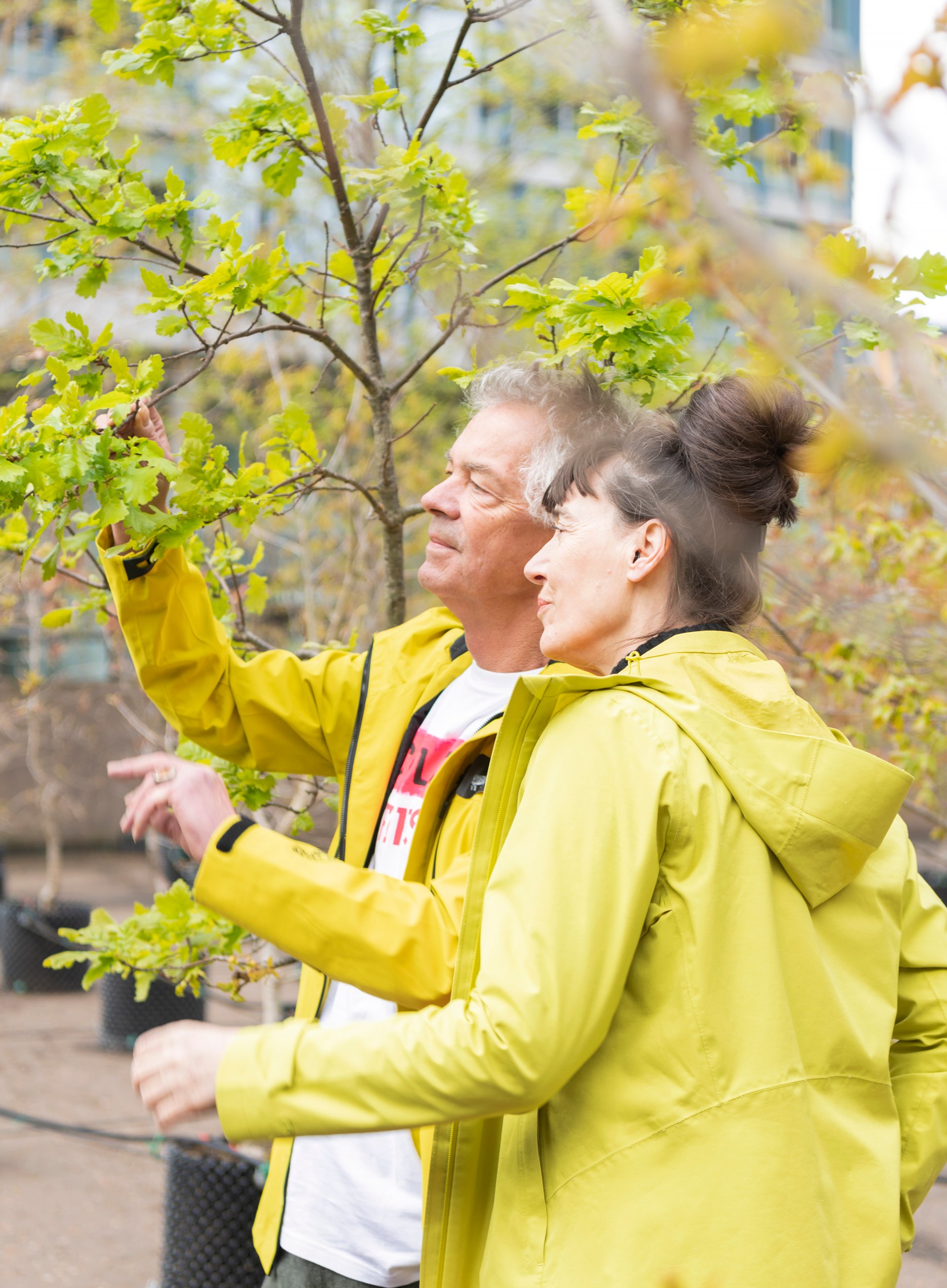 The placement of Beuys’ acorns is made even more poetic and pertinent by the fact that, directly below Tate Modern’ terrace in the gallery’s Tanks space, a major Beuys work The End of the 20th Century (1983-5) has been installed. One of the star pieces of Tate’s collection, it comprises 31 large rough-hewn basalt rocks which derive from the same stones as those placed alongside the trees in Kassel and will be viewable when Tate re-opens on 17 May. Like the 100 young oaks above, the work will also remain in-situ until 14 November, which is the closing date of COP26, the UN Climate Change Conference taking place in Glasgow. So for the next six months, two key elements of Beuys’ original 7,000 Oaks project will be reunited, one above ground and one below—much to the delight of Ackroyd & Harvey. “We really love that Beuys’ artwork is called The End of the 20th Century and our trees were germinated at the beginning of the 21st century, and now there’s this relationship between the vital life force of these trees above, and the pulsating energy of the stone below.”