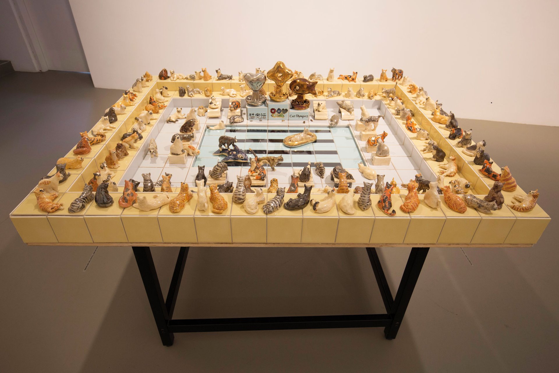 Nobuaki Takekawa’s installation includes dozens of lovingly crafted ceramic felines Photo: © Nobuaki Takekawa, Courtesy of Ota Fine Arts