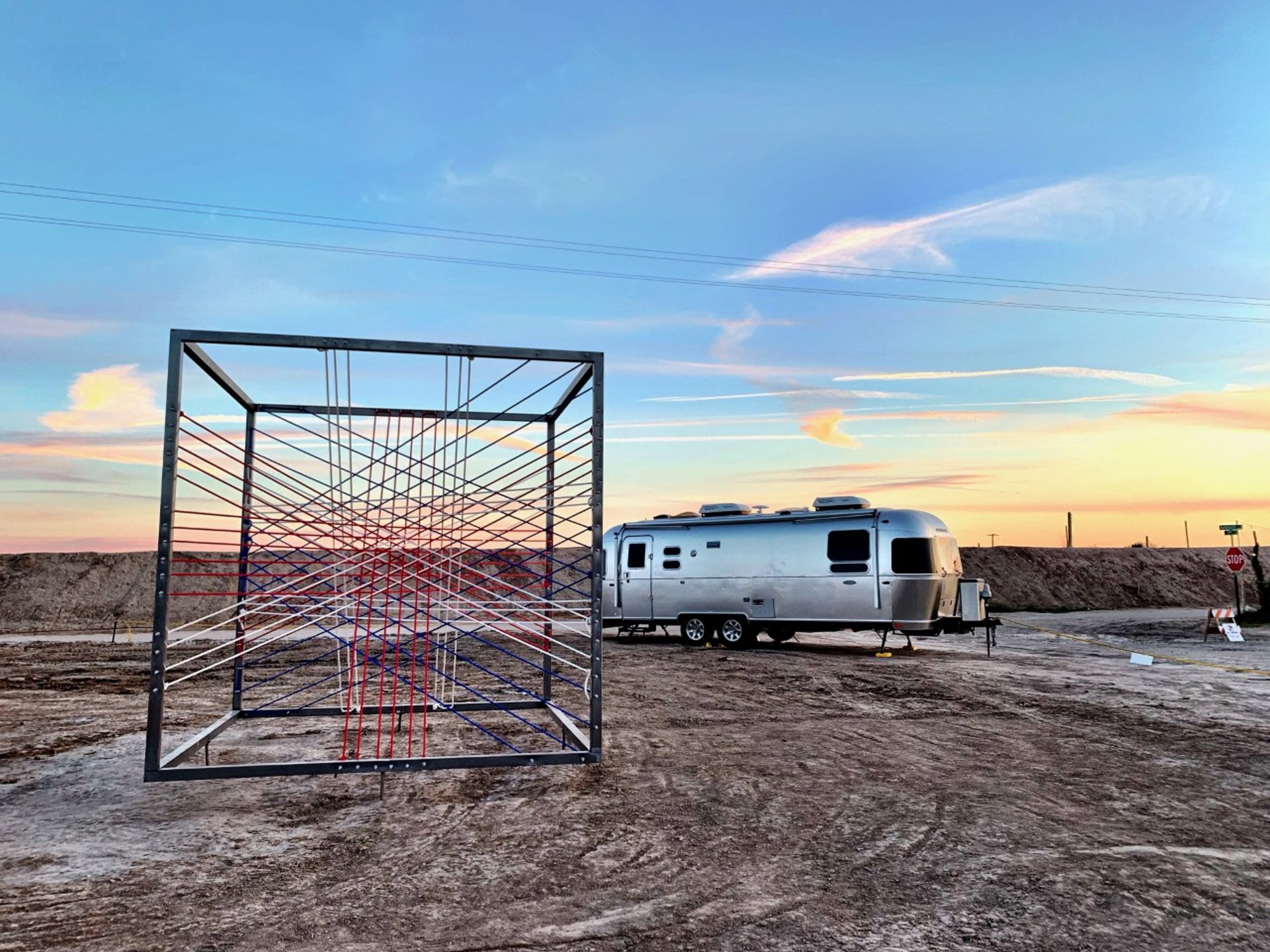 Artist Sean Guerrero’s Da Vinci piece, a giant flying fish sculpture, draws attention to the Salton Sea. The lake is now evaporating and shrinking, increasing the salt content of the water (the fish population has largely died out and an egg-like stench can pervade the air, which is not very nice).