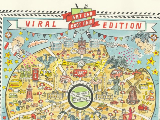 It may have been forced to go online this year, but the annual Art Car Boot Fair (ACBF) is not going to let a pandemic cramp its style. Instead, this Sunday (20 September) will see the unveiling of a special Viral edition of this much loved commercial cornucopia. Access will be given via a website featuring a specially designed Carbootopoia map by Adam Dant, which also teems with references to the fair’s rich 16 year history and some of its key characters.
