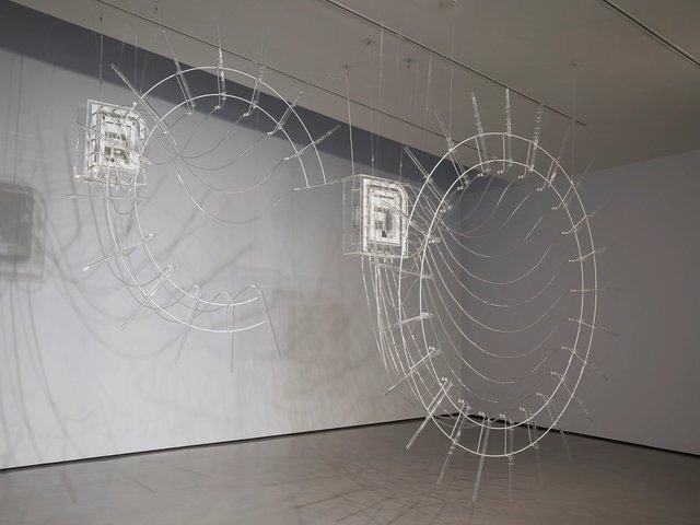 However, no shenanigans could detract from the powerful and poetic presence of Wyn Evans’s work itself which consists of two suspended interconnected glass arcs from which emanate 37 crystal flutes that are in turn powered by organ pumps to emit a mournful and haunting sound. Composition for 37 Flutes offers a magical combination of drawing, instrument, apparatus and sculpture and is a worthy winner of a prize that is committed to the development of contemporary sculpture. Wyn Evans describes the piece as a “threnody for Barbara” and I have no doubt that Ms Hepworth would have utterly approved.