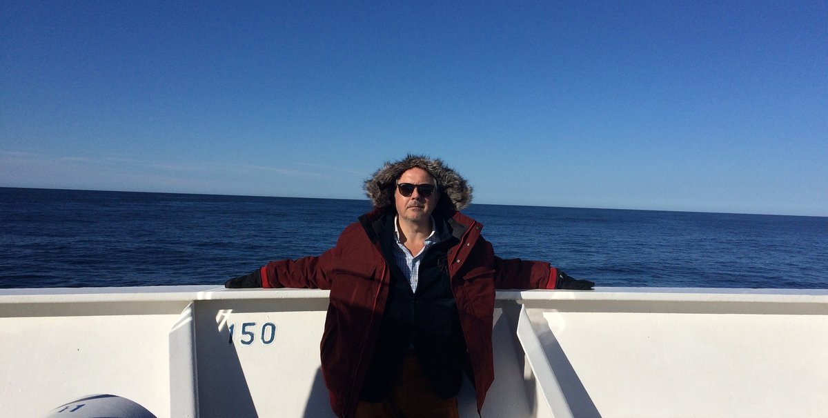 Forced myself up onto the deck, very front of the boat and much better, the thick fog moving in, joined in bracing spray by Arizona—Copenhagen ‘philosopher’ Dehlia Hannah; her university much supported by Walton Foundation so they have to be careful not to mention Walmart in any bad environmental context. Her fascinating project ‘The Year Without Winter’ a reverse version of the ‘year without summer’ 1816, due to massive volcano, when Frankenstein was written. Down for dinner and Charrière rightly pleased he has achieved one of his ambitions, Venice Biennale before 30, also wanted MoMA and I told him he could just post them a document, about this ambition even, and they are obliged to keep it in their archive, as Ray Johnson did, works they now proudly display. He accused me of being ‘Machiavellian.’ Surely an obligation for every artist? He too had also been on Francesca Habsburg boat trip to hide art treasure, already been on four sea voyages of over two weeks, damn him. Delicious duck leg and polenta I decided to risk.