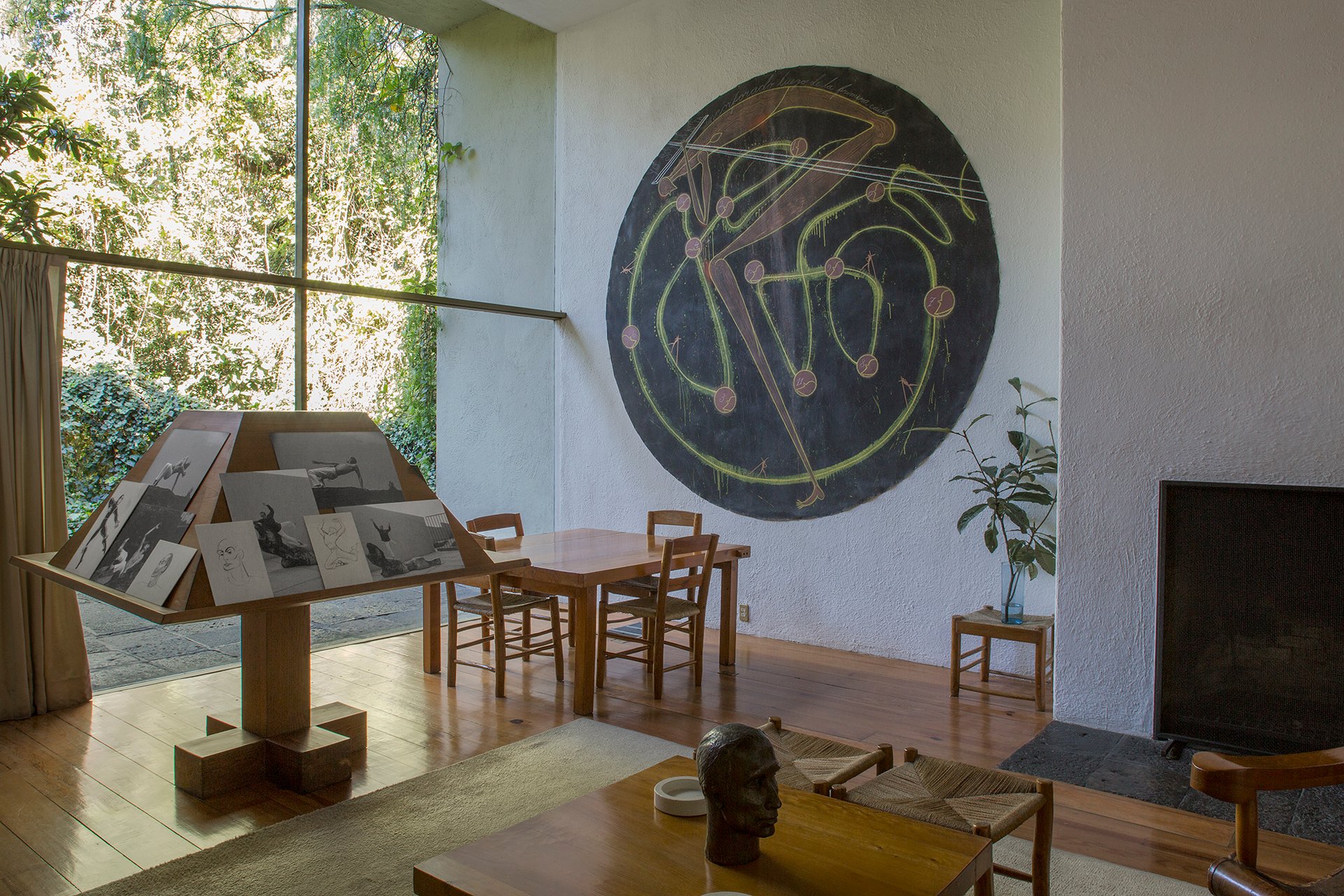 Estancia FEMSA’s co-artistic director Eugenia Braniff was on hand with Guerrero to lead tours. (Only a few people at a time can enter the house.) Going in, I was wary. Such interventions into historical landmarks can be jarring, particularly at Barragán’s home, where the addition of contemporary works may call attention to the pristine architecture while simultaneously diminishing it.