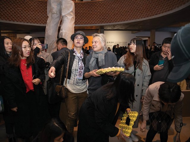 Accompanied by Cheryl’s long-time percussionist Robert Anderson, the mother and daughter double act belted out a medley of numbers that ranged from Madness to Prodigy, with Cheryl delivering an especially impressive version of Prince's “Purple Rain”. The songs were based on the artist canvasing people on what they danced to with their own families. The duo soon got pretty much everyone on the move, with some especially stylish shapes being thrown by such illustrious crowd members as the Galerie Thaddaeus Ropac director Julia Peyton-Jones and the design critic Alice Rawsthorn, along with that perennial dancing queen, Pauline Daley of Sadie Coles HQ. Only the Serpentine Gallery’s Hans-Ulrich Obrist remained stationary in order to film the proceedings for his Instagram live post.