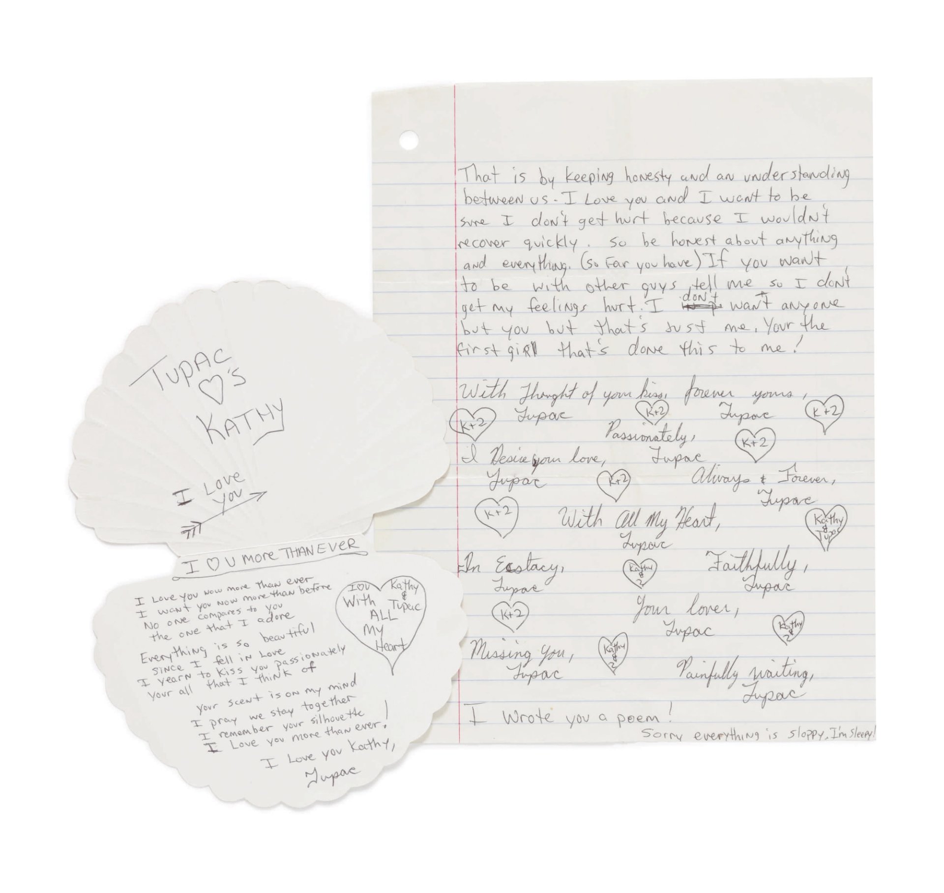 Tupac Shakur, High School love letter and card to Kathy Loy courtesy Sotheby's