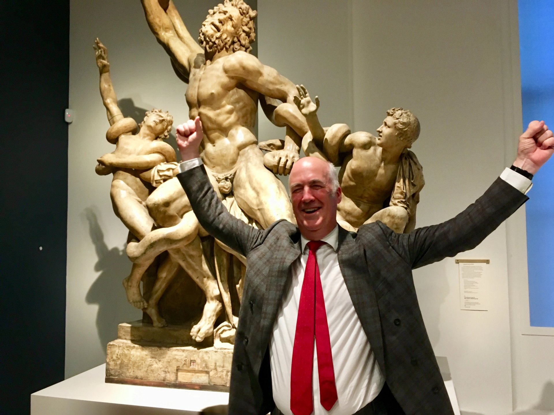 The Royal Academy's secretary and chief executive Charles Saumarez Smith whoops it up with Laocoon and his sons Louisa Buck