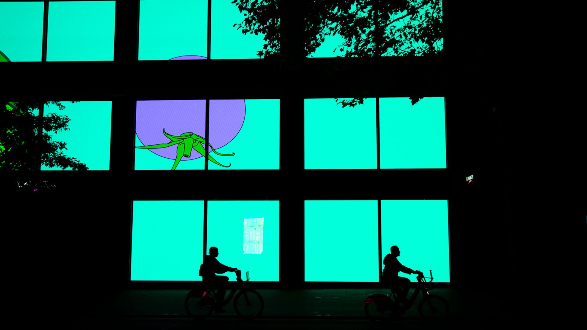 “During lockdown the only direct shopping that was possible was for food and I found myself looking at fruit and vegetables in a new way” says Michael Craig-Martin. The result is his Cornucopia Galactica in which giant line drawings of multicoloured produce are set in perpetual motion, hurtling, bobbing and twirling against a background of constantly changing colour. “It is a celebration, a dynamic cornucopia, a galaxy of these great wonders of nature, constantly moving, turning, spinning through an intensely coloured space like planets, satellites, and spaceships,” explains Craig-Martin. He adds: “I hope you never look at broccoli the same way again.”