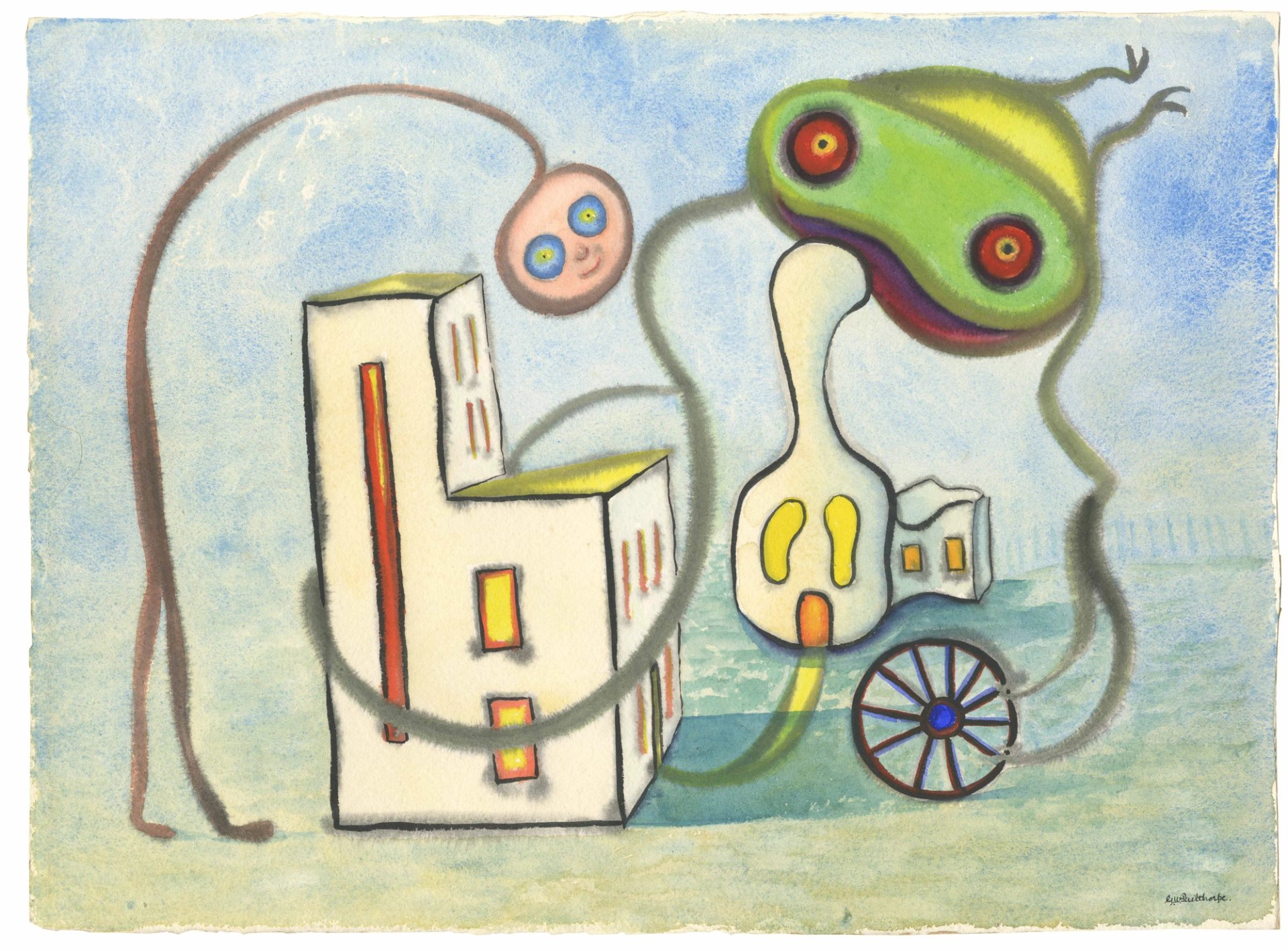 A more famous advocate of Surrealist automatism was André Masson, who is represented in this show by a calligraphic ink portrait of Benjamin Péret. His fellow self-taught Surrealist Yves Tanguy lays bare more Freudian recesses of the unconscious mind in a delicate 1931 drawing of a fragmented, spectral multi-breasted figure in a dessin automatique of 1931. There is also a vividly coloured cartoonish floating baby painted in the 1930s by Grace Pailthorpe, a Freudian psychoanalyst who, with her collaborator-companion Reuben Mednikoff, used their art practice to investigate the psycho-sexual nature of human behaviour.
